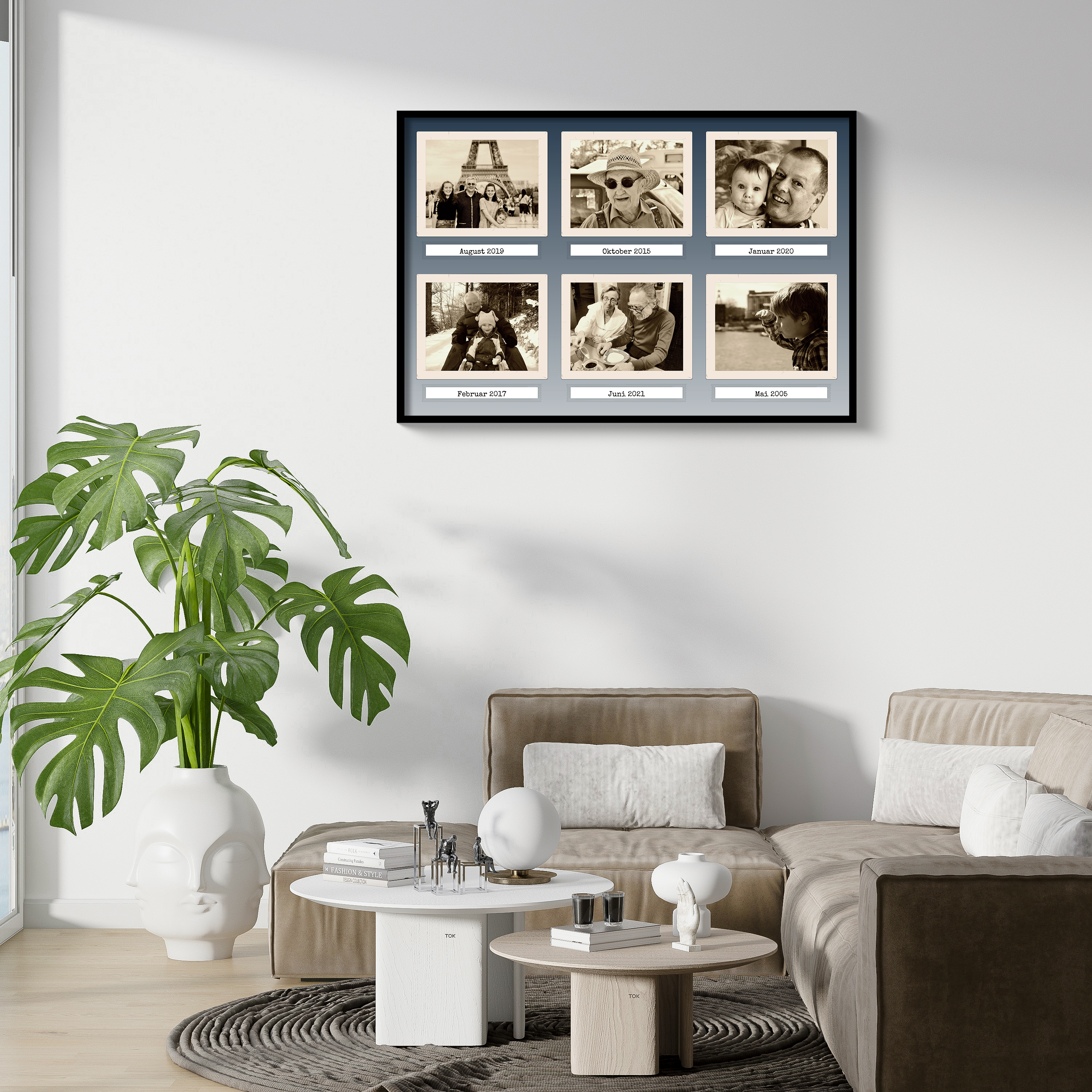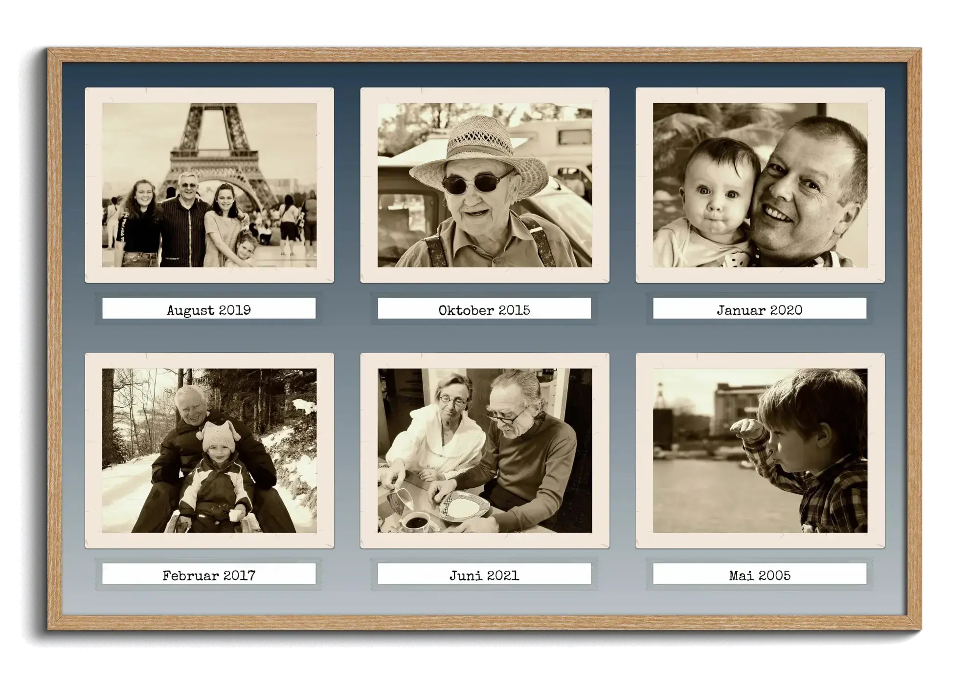 Collage mit 6 Fotos im Retrostil verewigt Erinnerungen auf hochwertigem 30x45cm Poster.