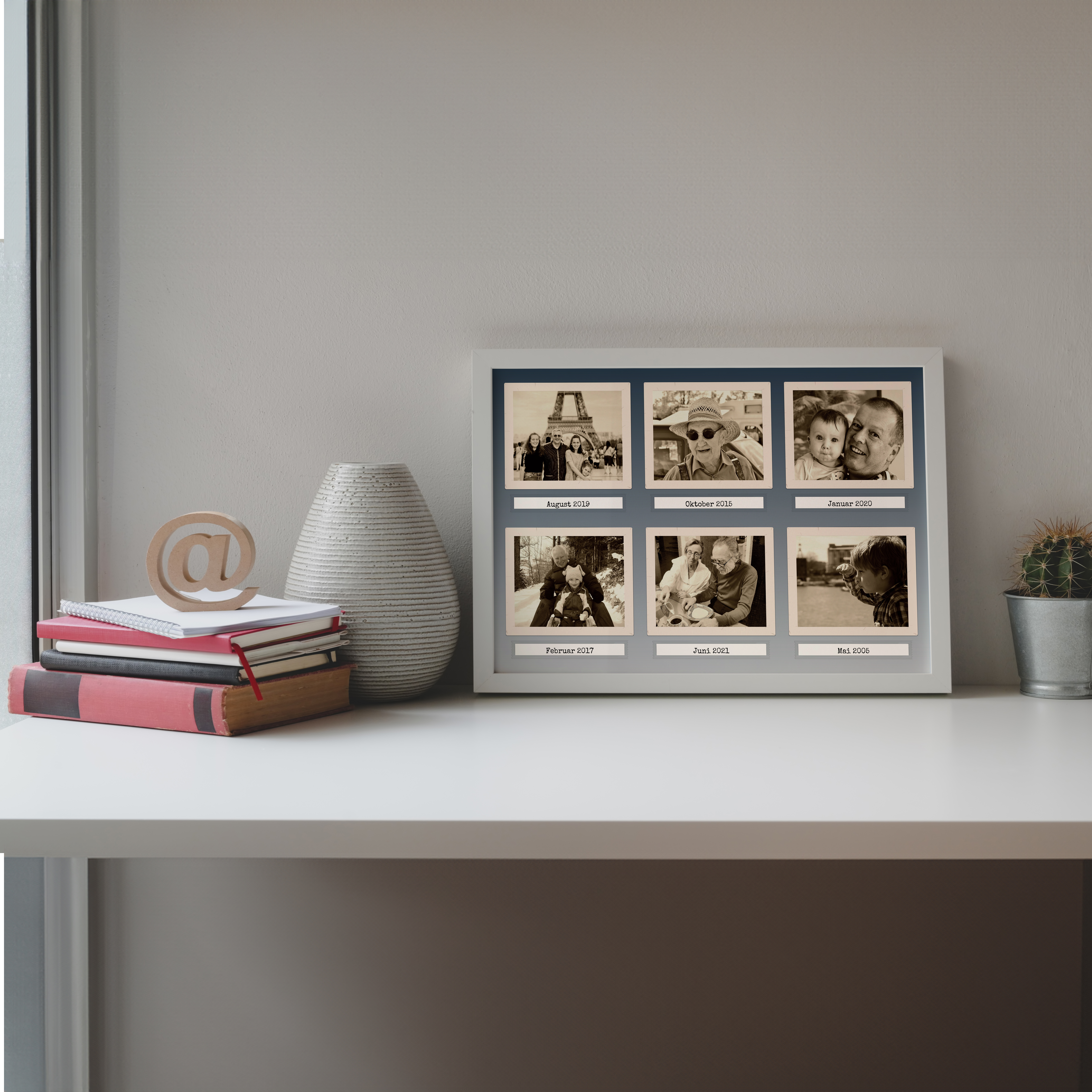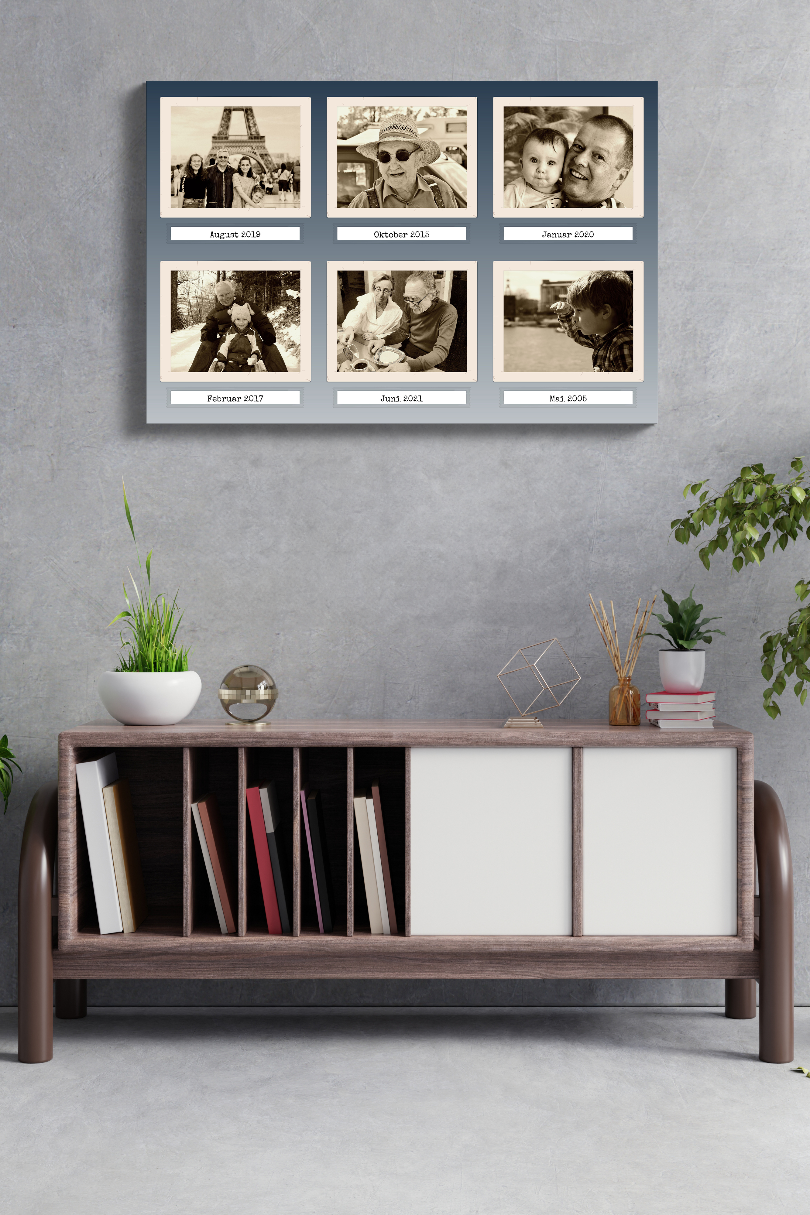 Ob als Geschenk zum Geburtstag, Jahrestag oder Hochzeit, als Erinnerung an einen unvergesslichen Urlaub oder einfach um deine eigenen vier Wände zu verschönern - eine Fotocollage im Retrostil ist immer eine gute Wahl! Und mit sechs Fotos hast du massenhaft Raum, um deine Momente lebendig werden zu lassen. Erstelle jetzt deine persönliche Collage und freue dich auf ein einzigartiges Ausdruck deiner schönsten Erinnerungen.