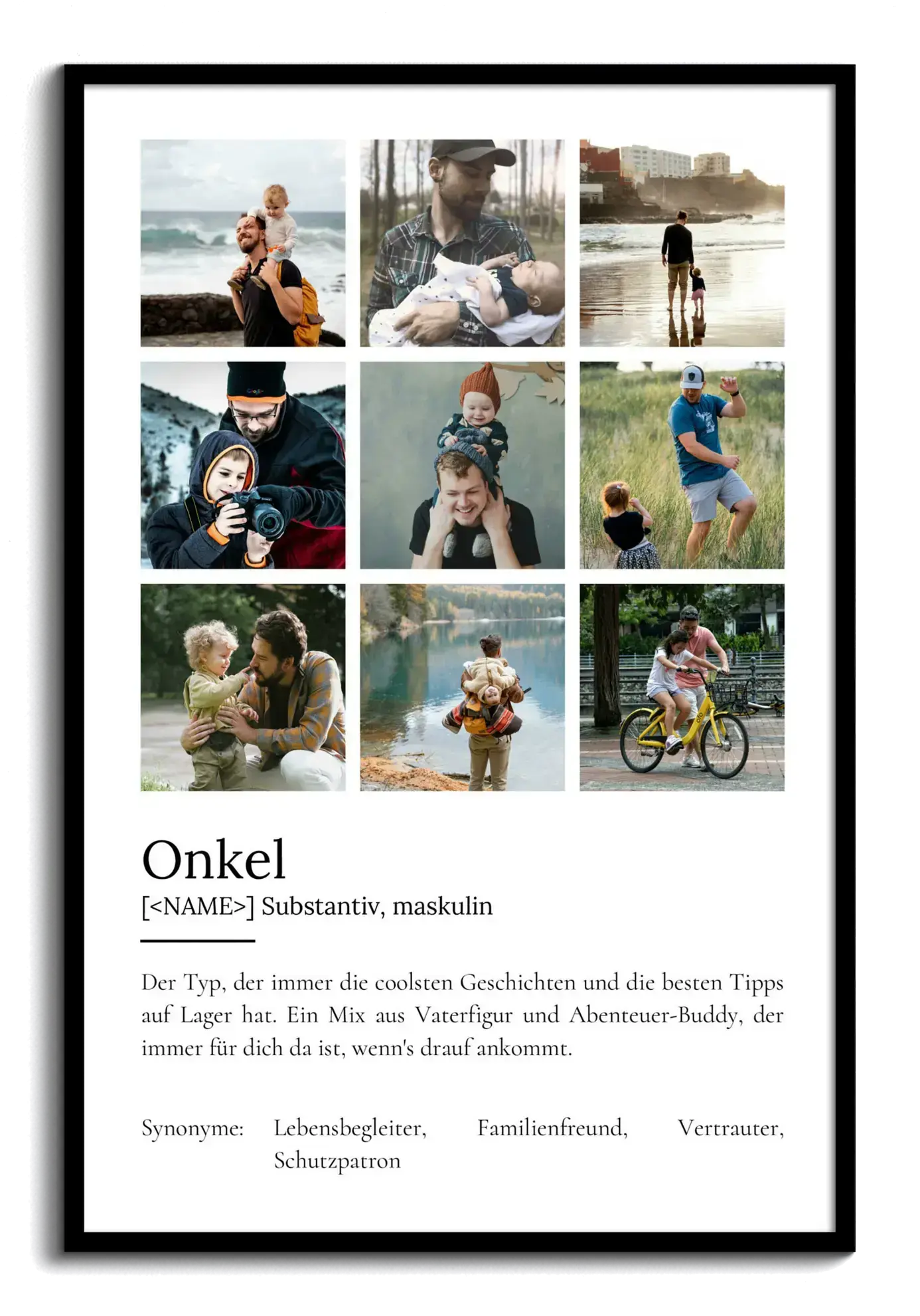 Perfektes Geschenk für Onkel: Personalisiertes Definitions-Poster mit Foto und individuellem Text.
