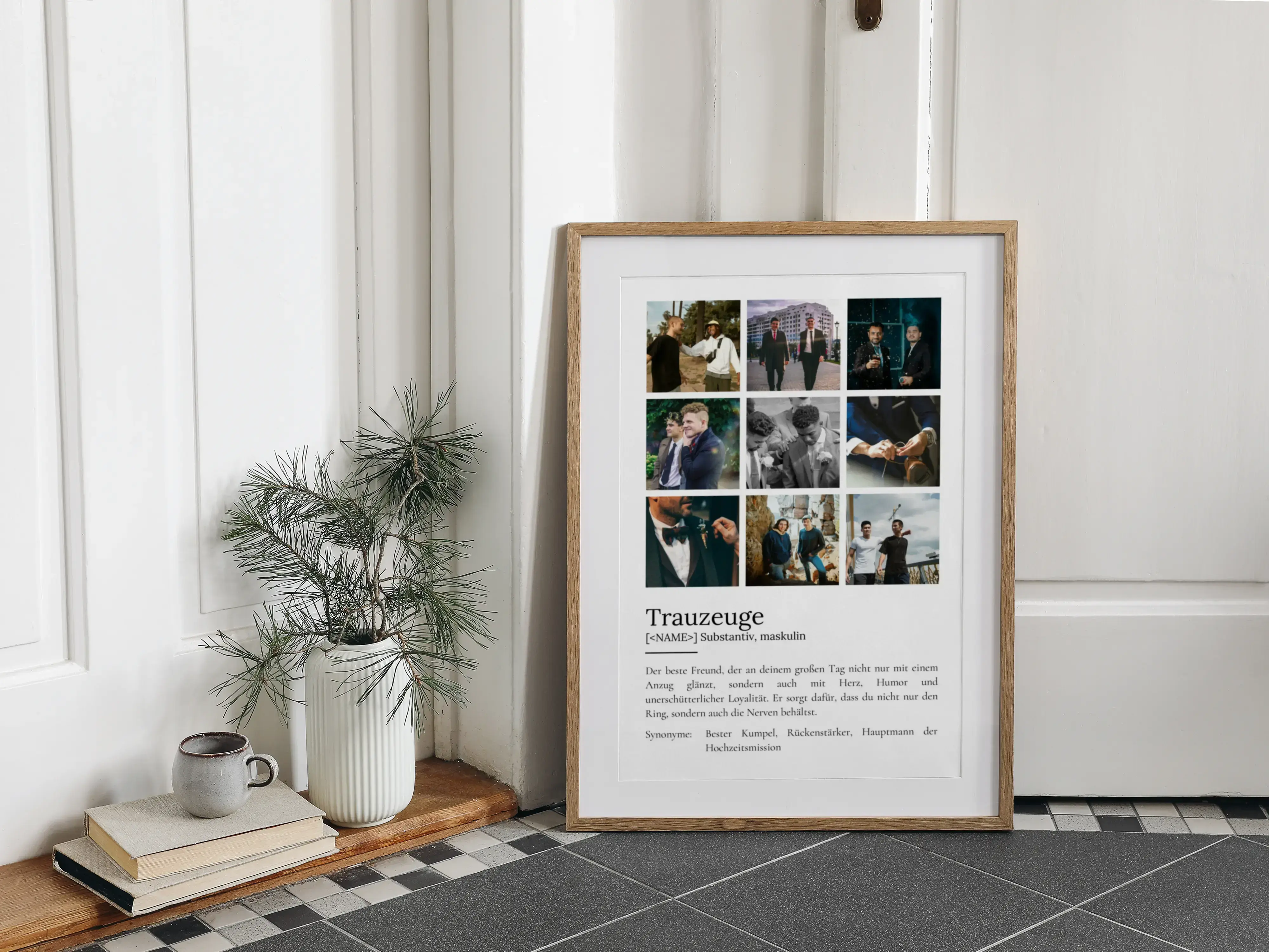 Begeistere mit einem personalisierten Definitions-Poster für den Trauzeugen im Duden-Stil.
