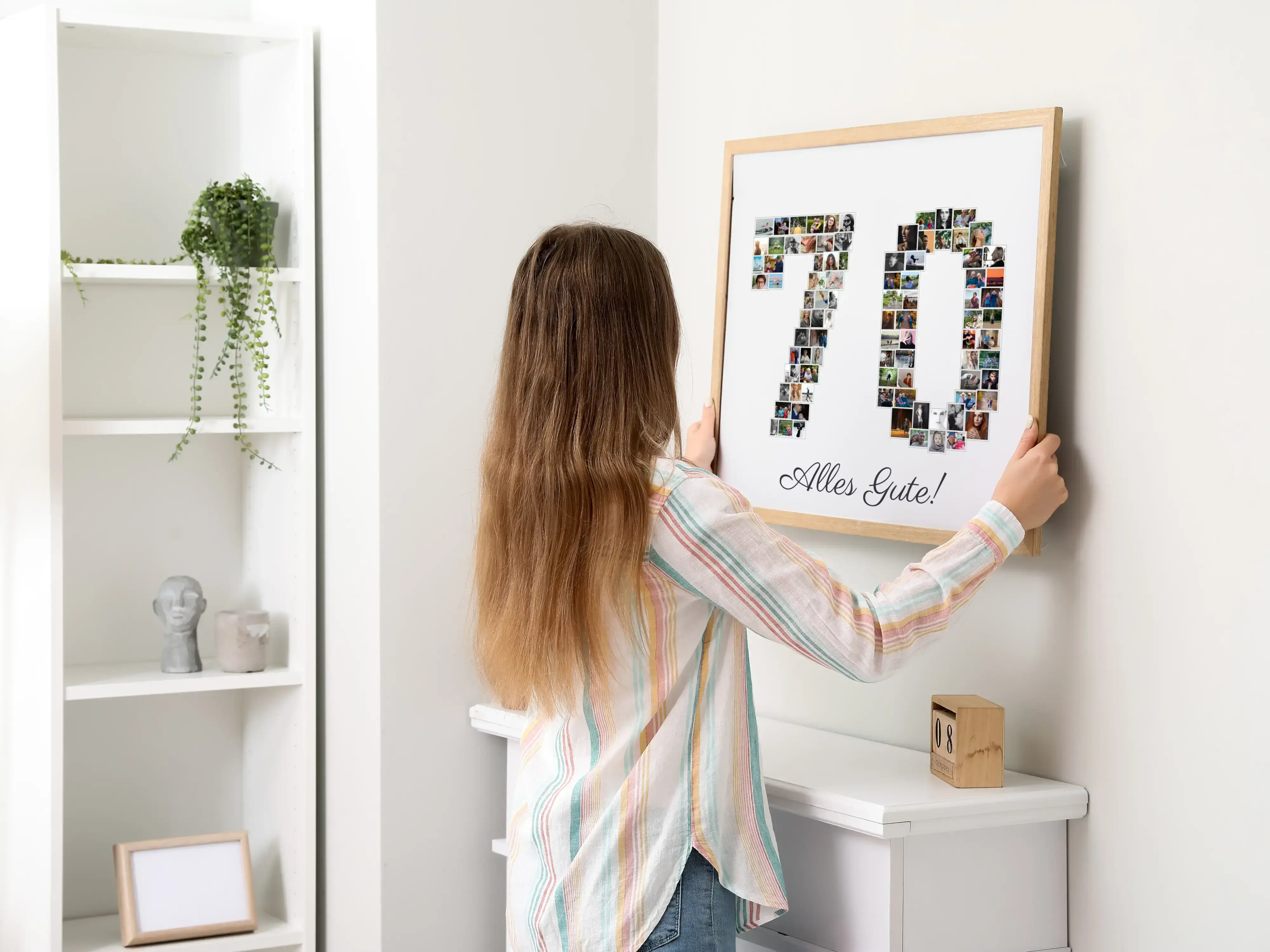 Fotocollage "70" erstellen. Gestalte jetzt dein individuelles Geburtstagsgeschenk mit bis zu 100 Fotos!