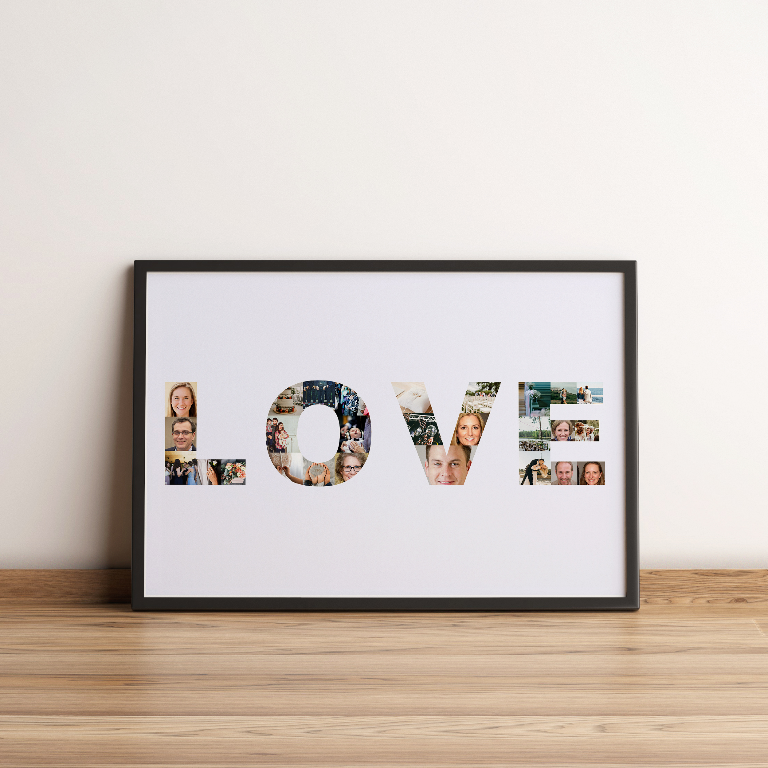 Fotogeschenk zur Hochzeit oder zum Jahrestag - Schriftzug „LOVE"