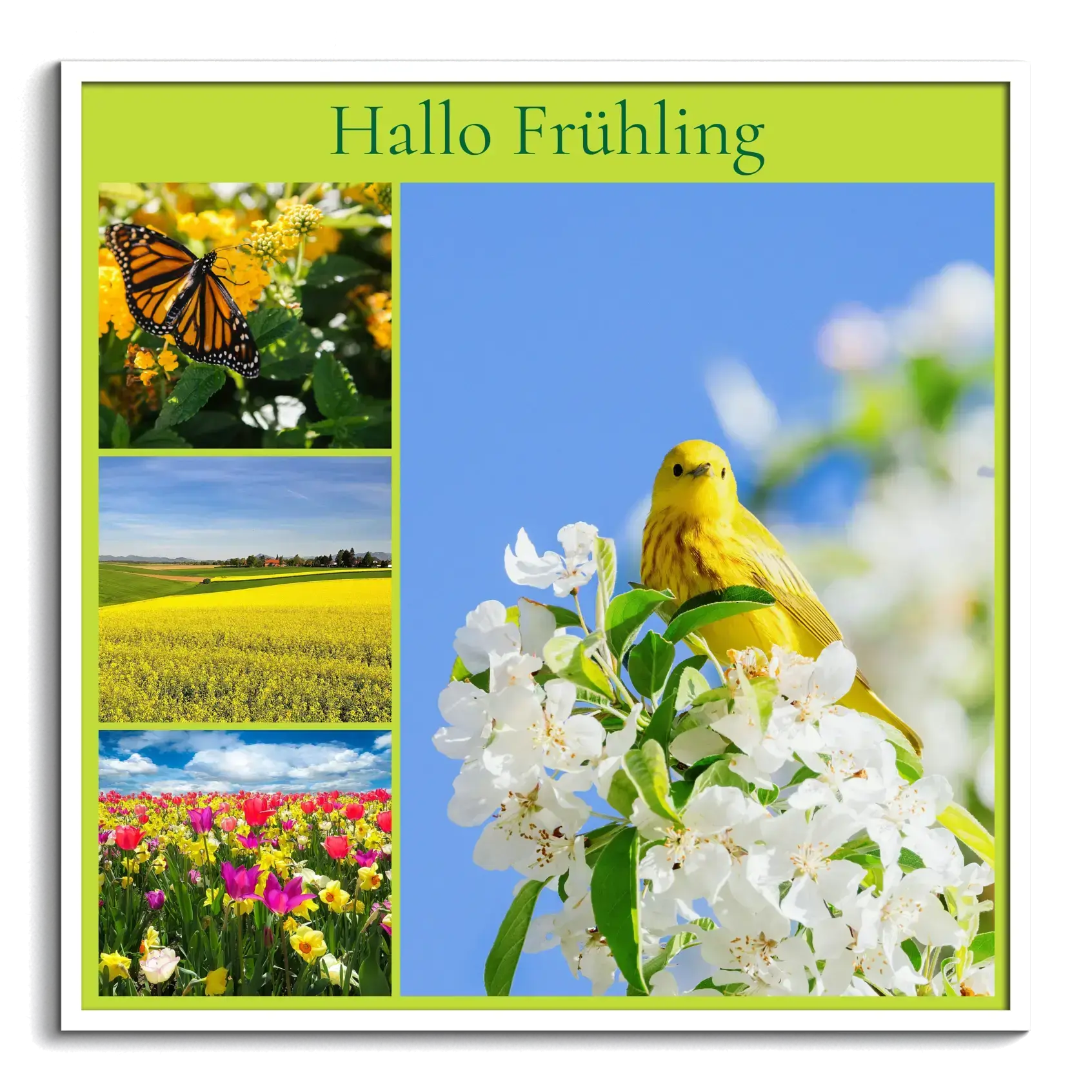 Jetzt deinen Frühlings-Kunstdruck gestalten und sofort bestellen. Frühlingsgefühle bringt Blumen, blühende Wiesen und frisches Grün als saisonales Wandbild an die Wand. Wähle Vorlagen von Herz bis Raster, kombiniere eigene Frühlingsfotos mit kurzen Texten wie Hallo Frühling und setze die Motive stimmig vom kleinen Poster bis zur grossen Leinwand in Szene.