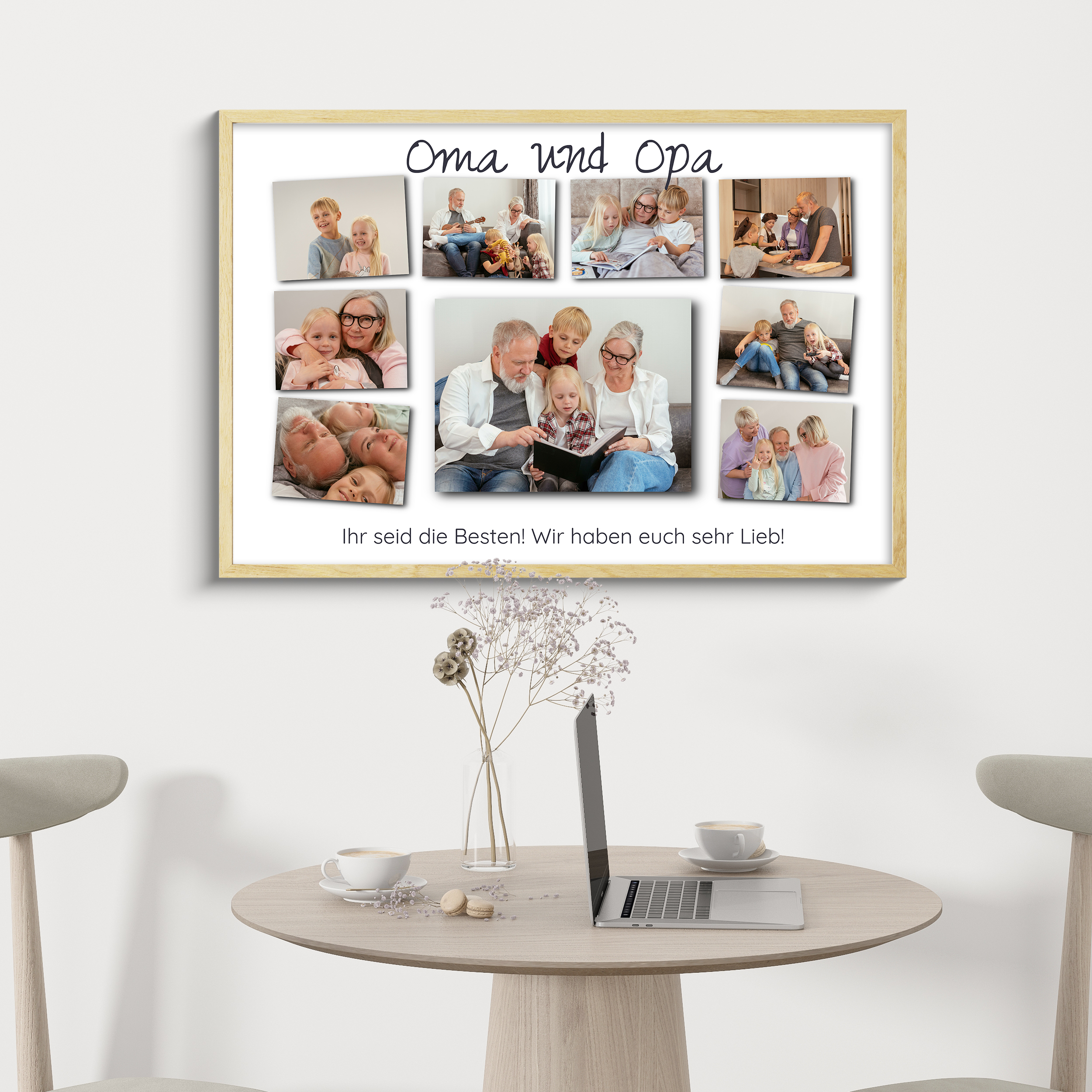 9-Foto-Collage für Oma & Opa: grosses Mittelbild, Spruch, individuell anpassbar – Geschenkidee