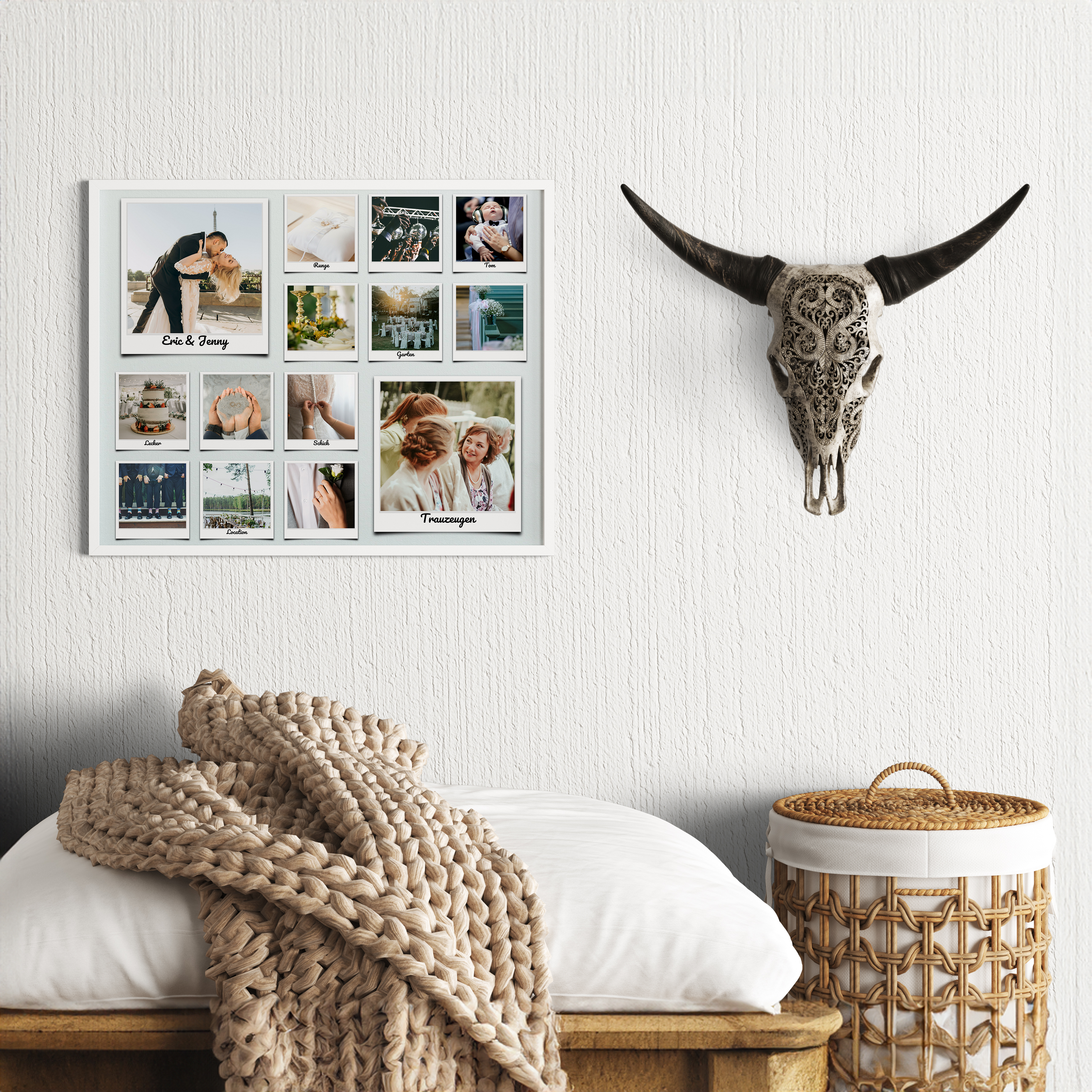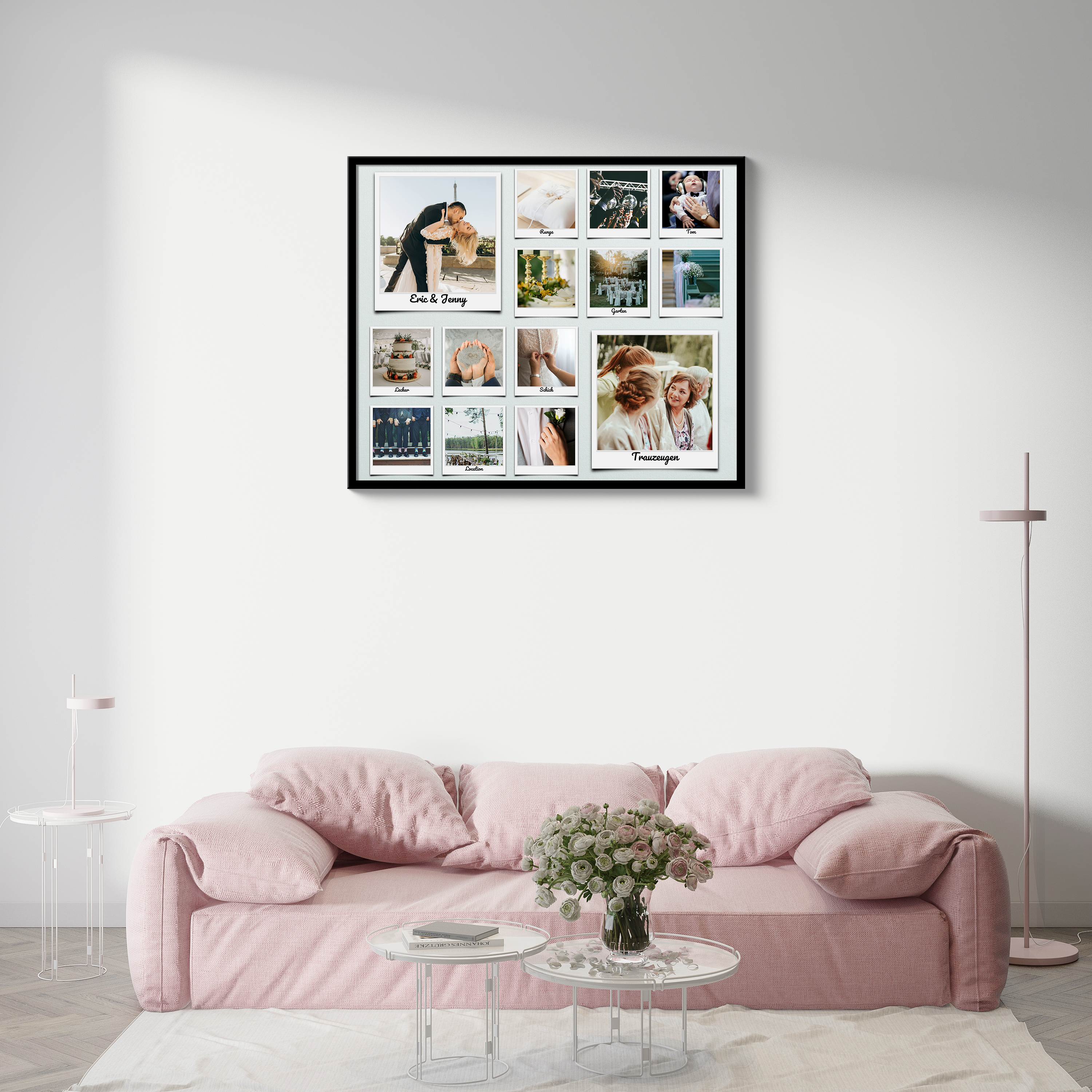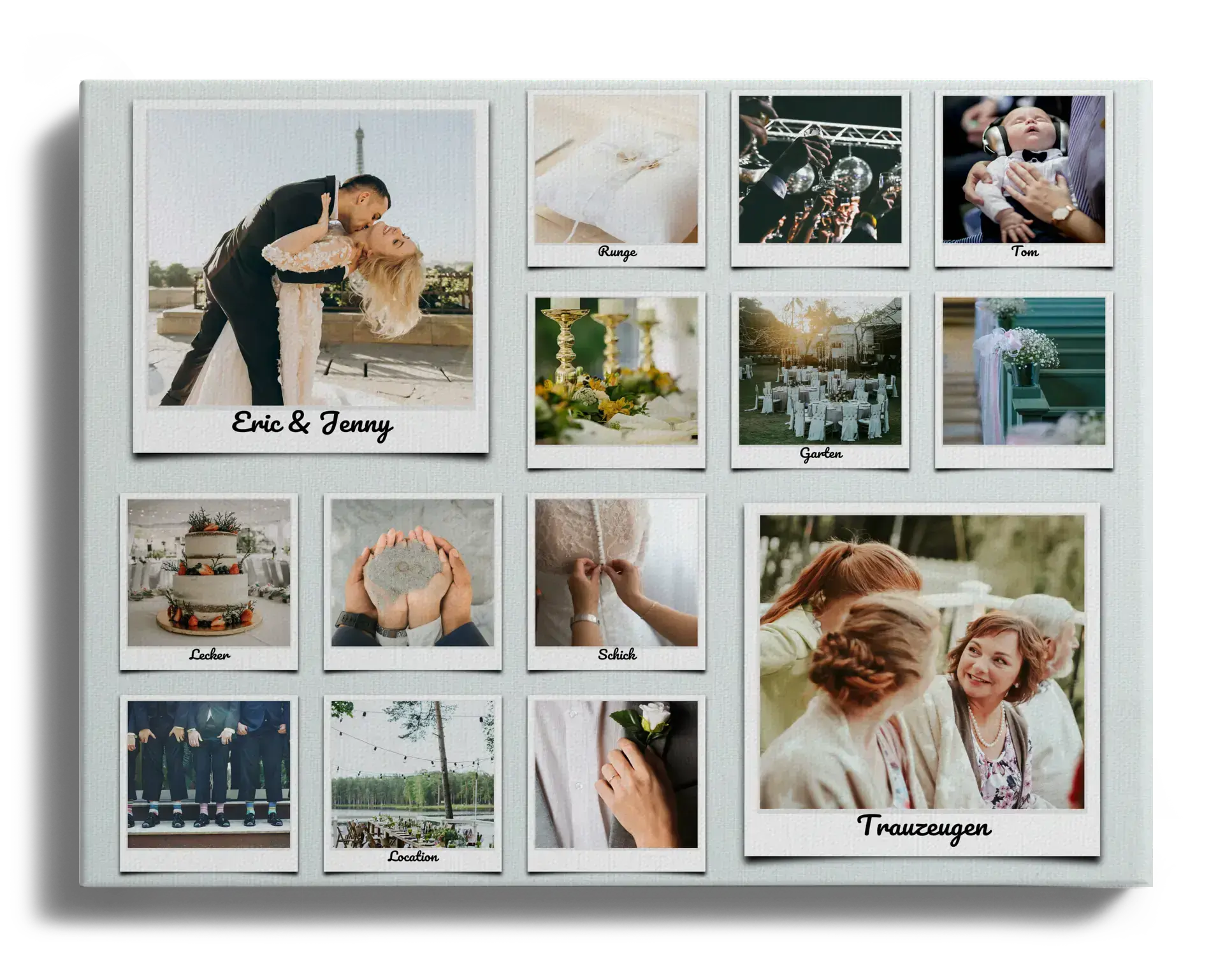 Unsere Hochzeits-Fotocollage ist das perfekte Geschenk für frisch Vermählte oder das ideale Andenken für deinen grossen Tag. Sie eignet sich auch hervorragend als Jahrestagsgeschenk oder als einzigartiges Dankeschön-Geschenk für deine Hochzeitsgäste oder Trauzeugen. Kreiere jetzt deine einzigartige Hochzeitserinnerung!