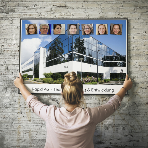 Personalisierte Team-Fotocollage: Kreatives Design auf Alu-Dibond.
