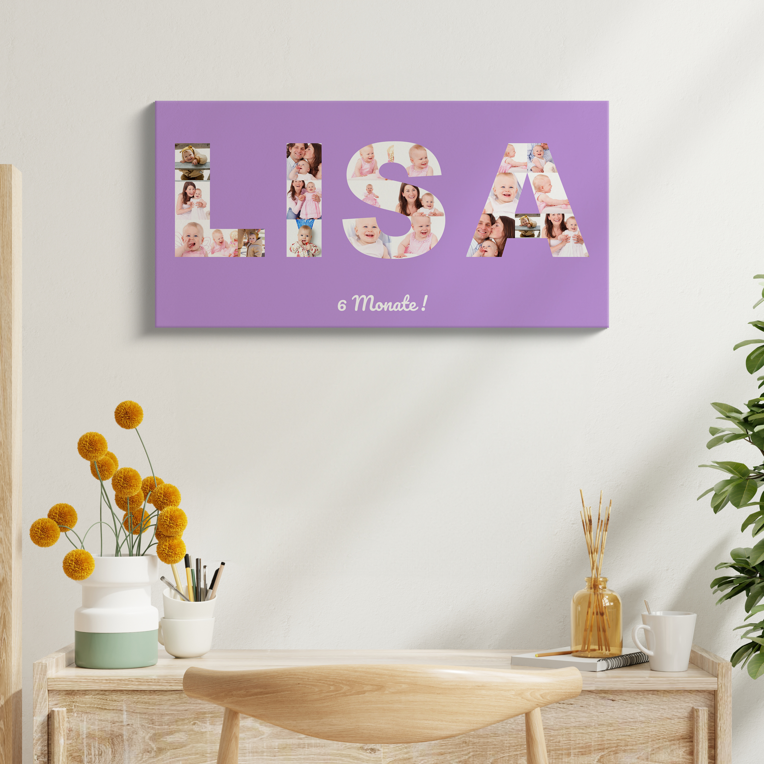Fotocollage als Namen – Geschenk zu Geburt und Geburtstag