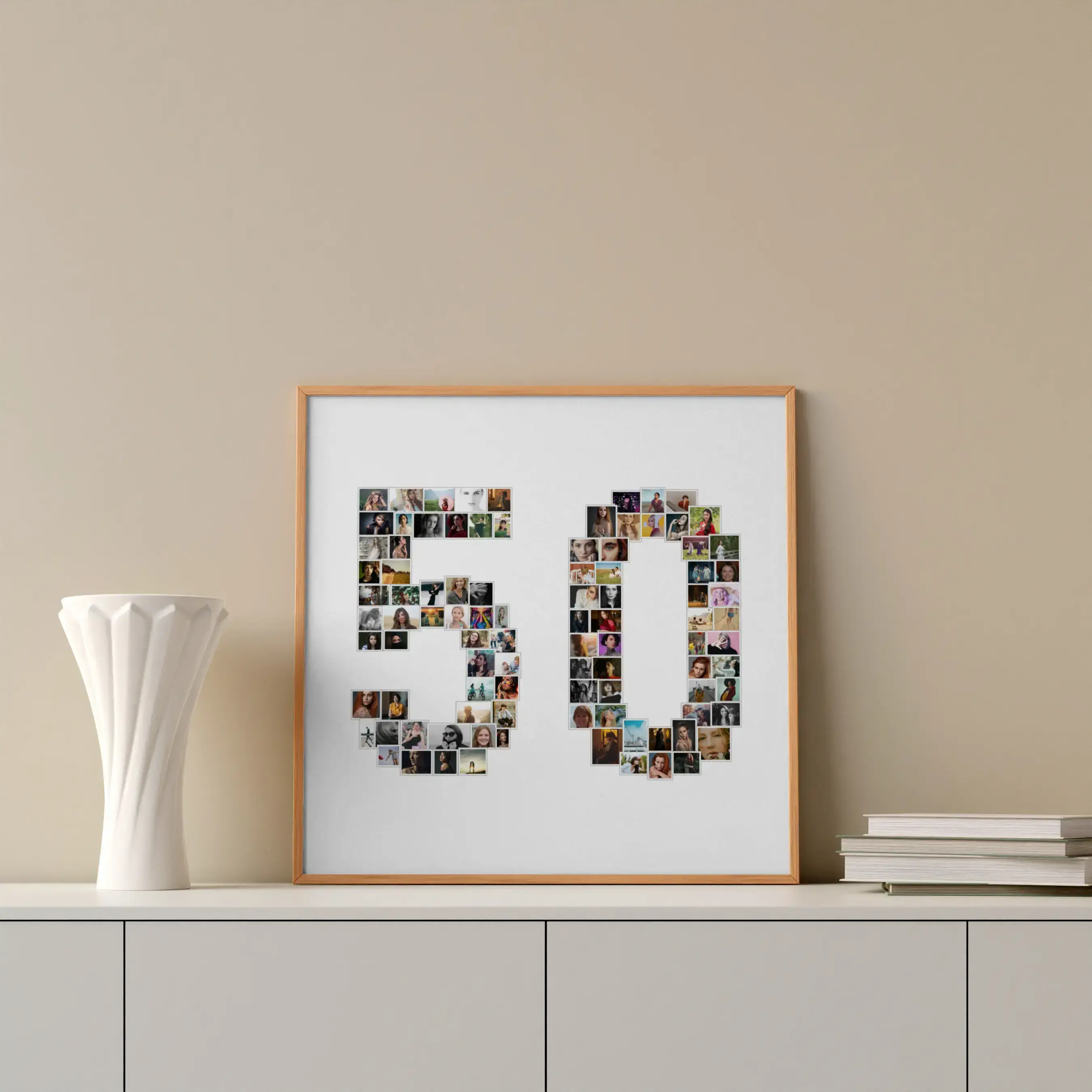 Lass dich kreativ entfalten und erstelle eine individuelle Fotocollage! Hier ist unsere 50er-Zahlencollage das perfekte Beispiel, erstellt aus vielen kleinen und persönlichen Momenten, die zusammen genommen eine wunderschöne Zahl 50 ergeben.