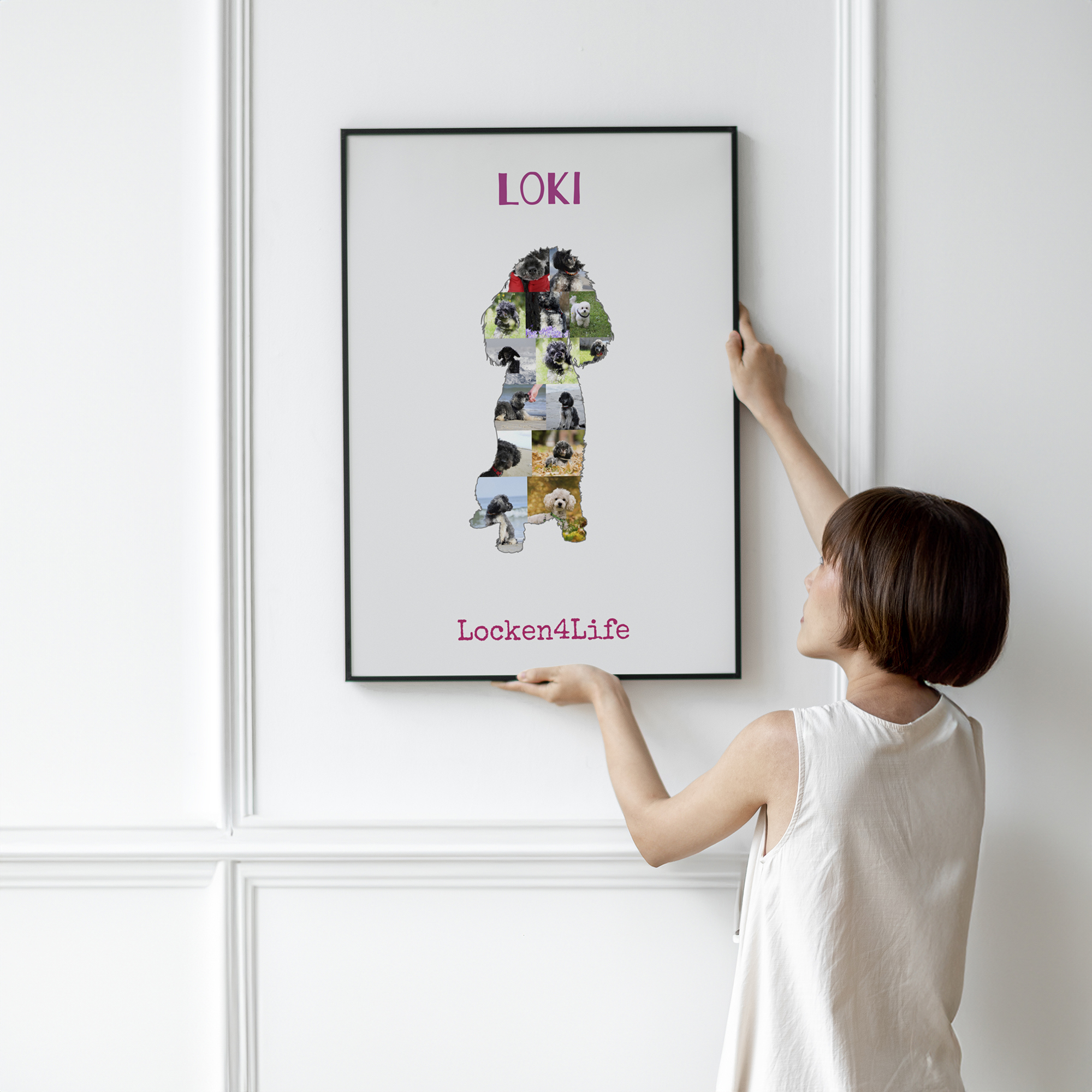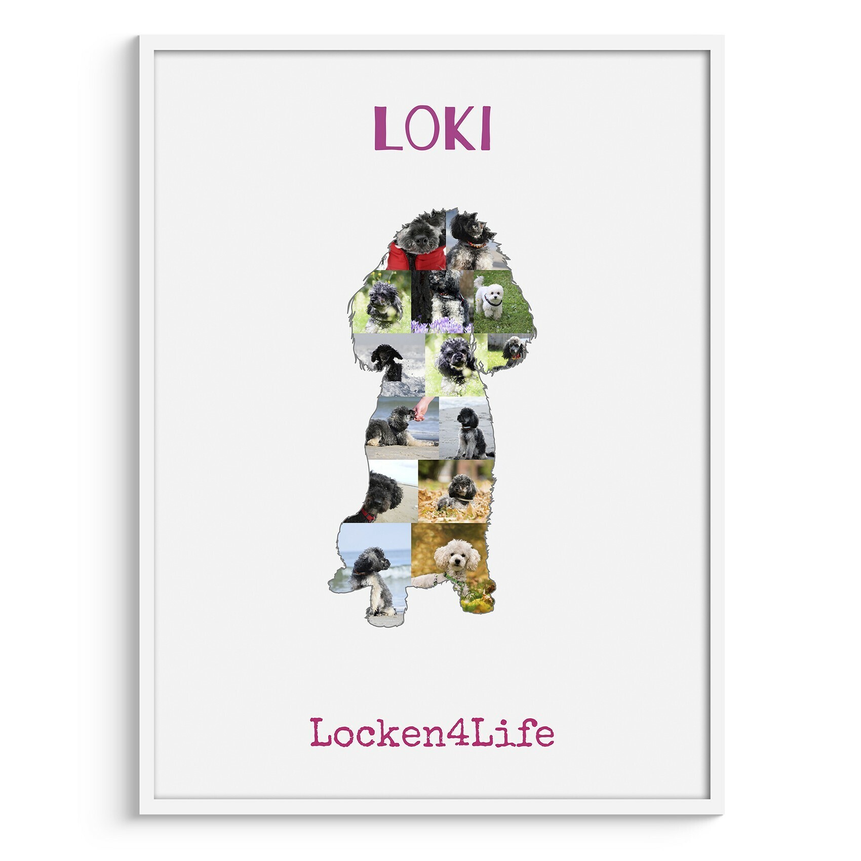 Du weisst, wie besonders dein Zwergpudel ist und wir wissen, wie besonders Fotocollagen sein können. Mit unseren massgeschneiderten Collagen, kannst du bis zu 20 deiner Lieblingsfotos von deinem liebeswerten Begleiter in einer bezaubernden Silhouette eines sitzenden oder stehenden Zwergpudels zusammenfügen. Füge noch einen persönlichen Text hinzu und wir sorgen dafür, dass diese Emotionen auf hochwertigem Druck festgehalten werden.