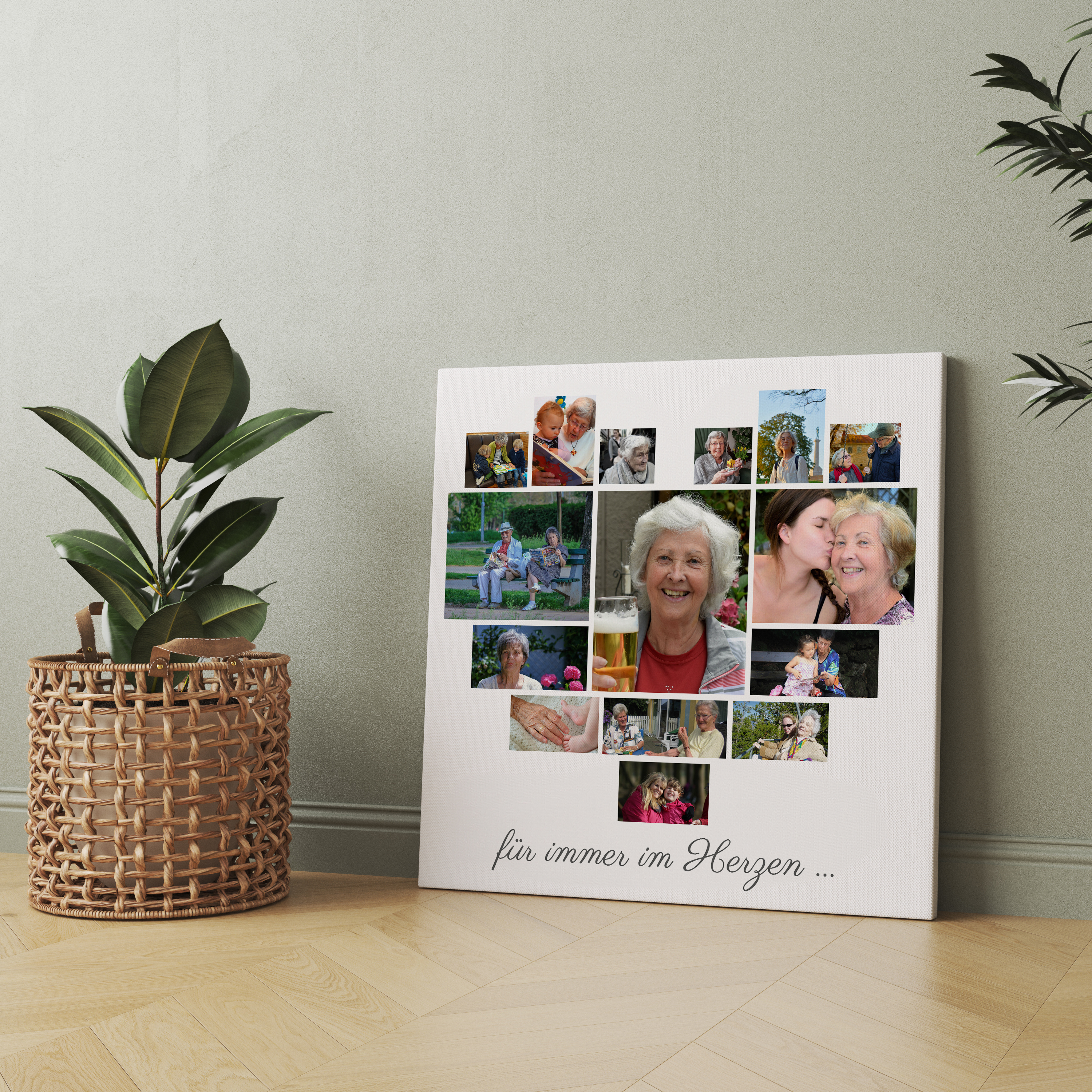 Fotocollage in Herzform auf Leinwand – jetzt selbst gestalten
