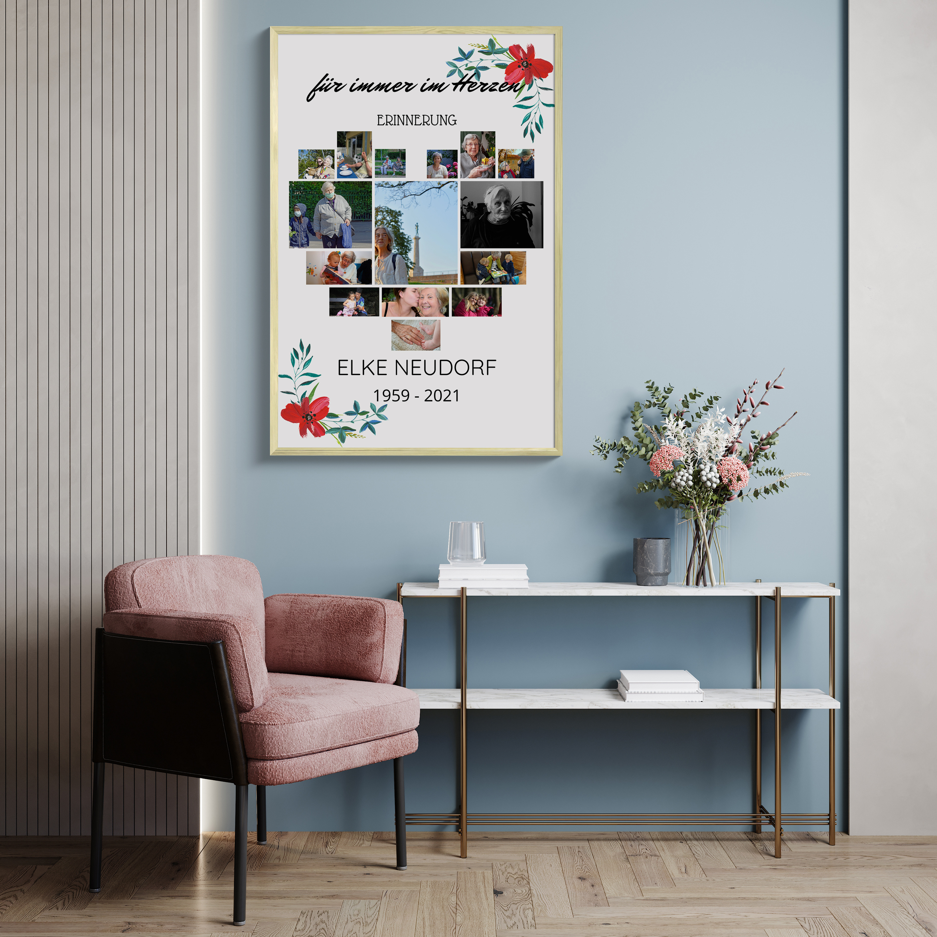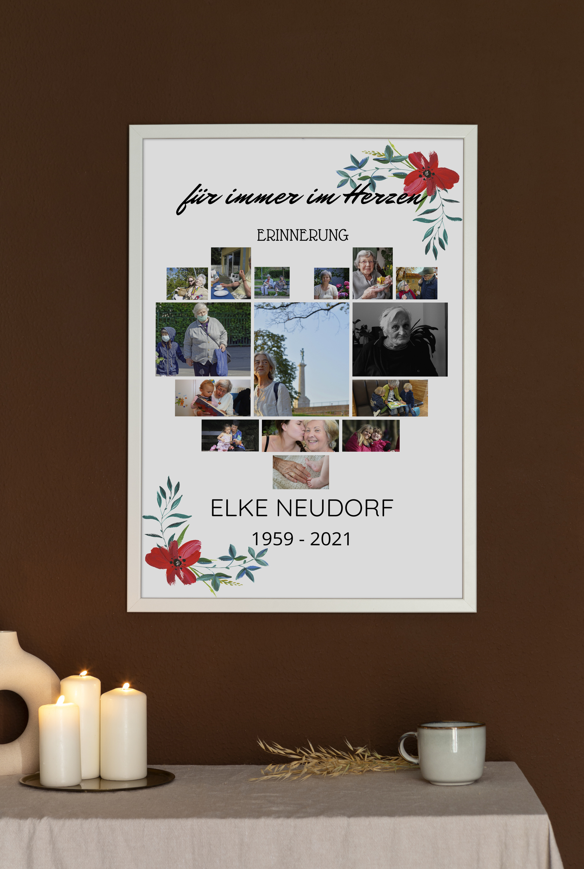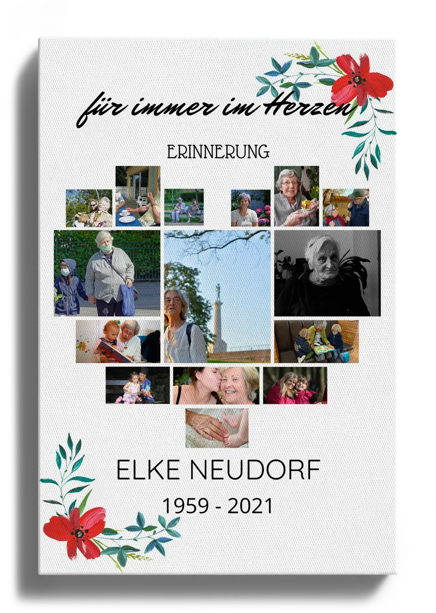 Trauercollage - Fotocollage mit Blumenmotiv in Herzform