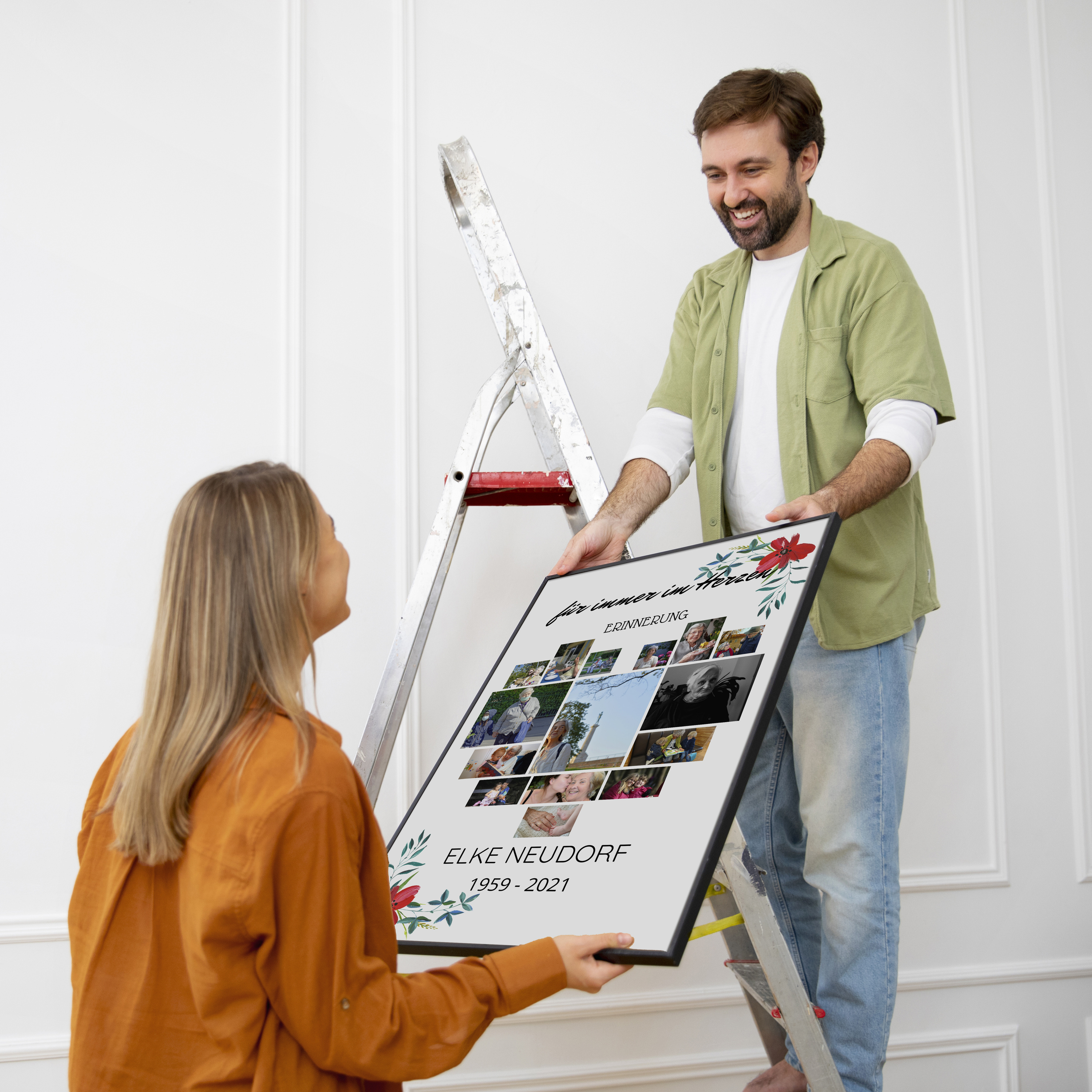 Für die gedruckten Varianten deiner Collage verwenden wir hochwertige Materialien, die deinem Andenken den bestmöglichen Ausdruck verleihen. Du kannst zwischen Poster, gerahmtem Bild, Leinwand, Alu-Dibond oder Acrylglas wählen. Alle Drucke sind im Premiumdruckverfahren gefertigt und gewährleisten leuchtende Farben und eine lange Haltbarkeit.
