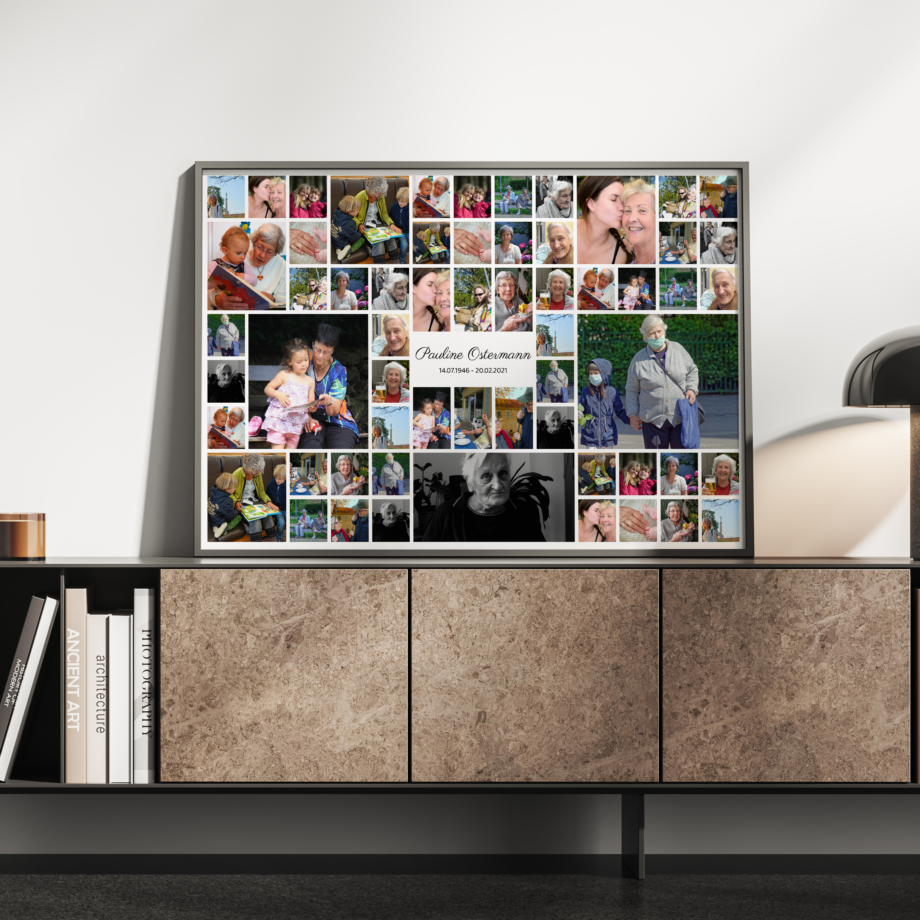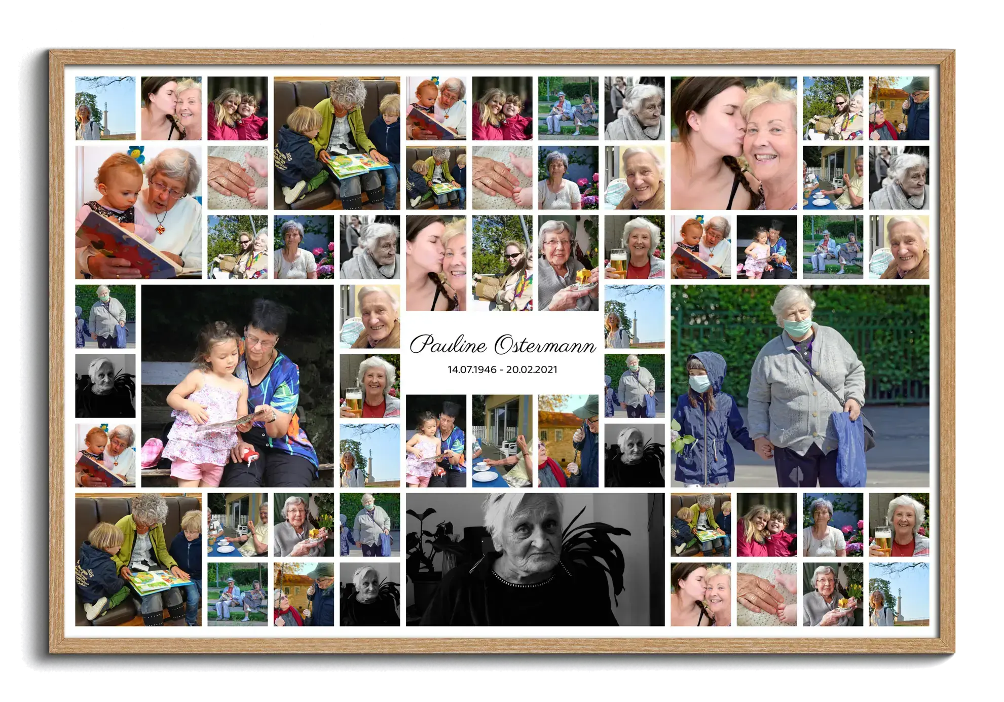 Eine Trauercollage ist nicht nur ein wertvolles Andenken, sondern auch ein einzigartiges Geschenk für Anlässe wie Gedenktage, Beerdigungen oder als liebevolle Erinnerung im Alltag. Sie schafft eine Verbindung zwischen Vergangenheit und Gegenwart und hält die Erinnerung an einen geliebten Menschen lebendig.
