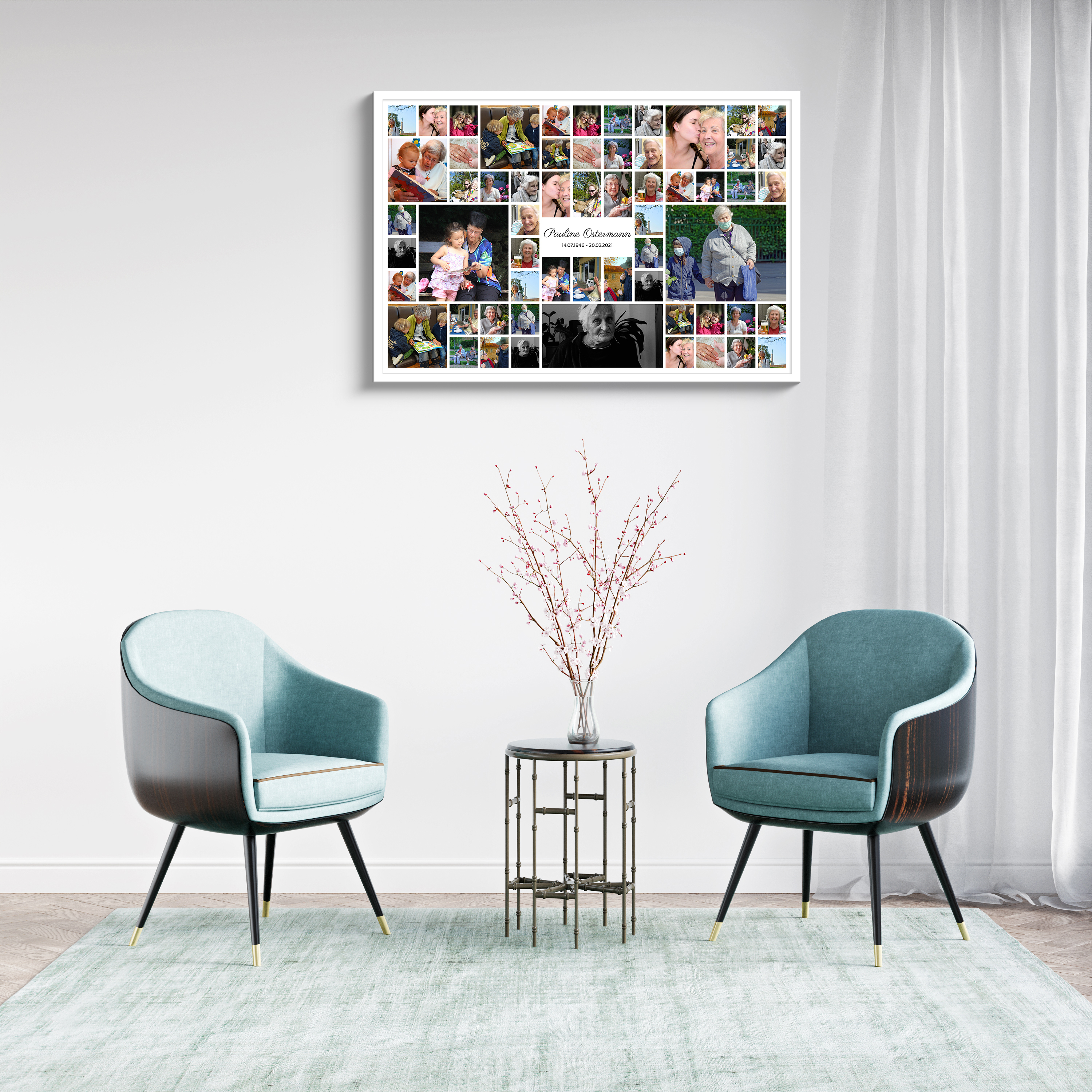 Die Erstellung deiner persönlichen Collage ist kinderleicht. Du wählst einfach eine Vorlage aus, passt sie nach deinen Wünschen an und lädst deine Fotos hoch. Dein Design wird in Echtzeit angezeigt, während du Anpassungen vornimmst, sodass du stets einen genauen Überblick behältst. Sobald du zufrieden bist, kannst du dein Werk in den Warenkorb legen und bestellen.