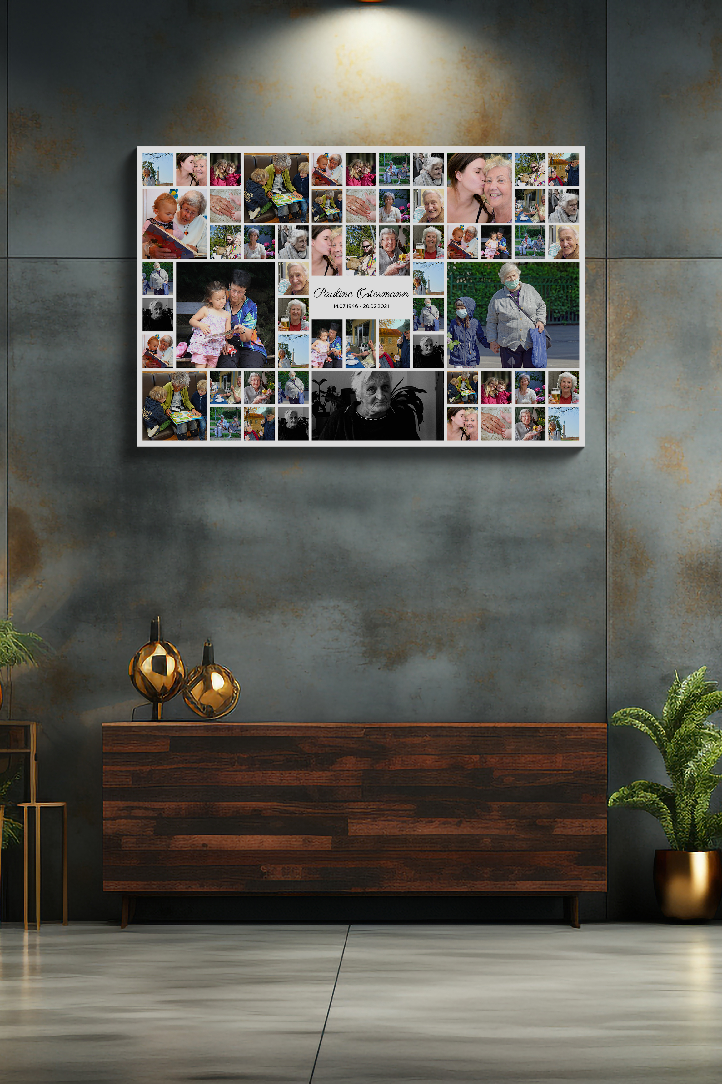 Gestalte deine Trauercollage auf Leinwand mit persönlichen Fotos und Texten