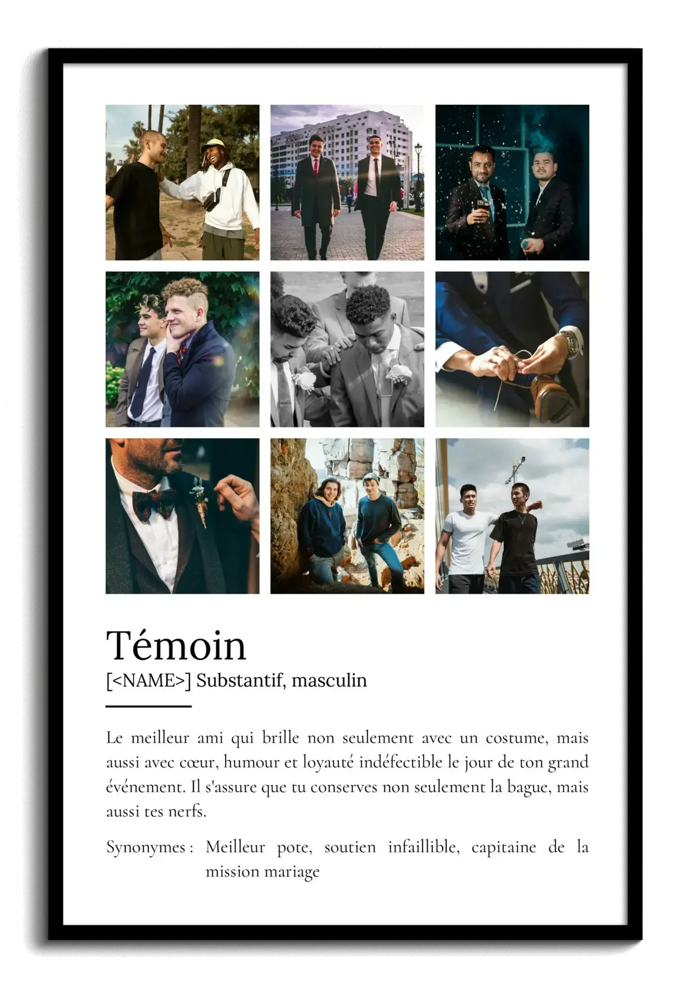 Cadeau parfait pour honorer le Trauzeuge: photo et texte personnalisés évoquent l'amitié fidèle.