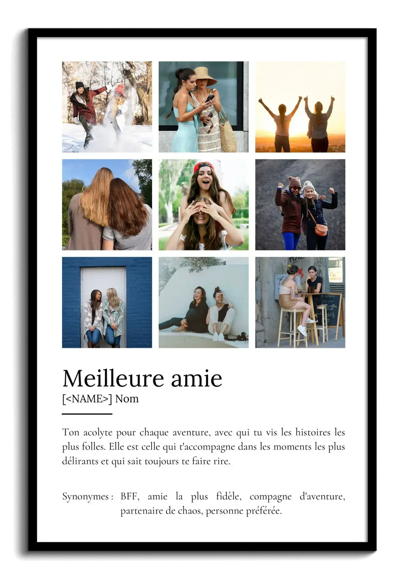 Créez un cadeau unique : personnalisez votre affiche 'Meilleure amie' avec photos et texte.
