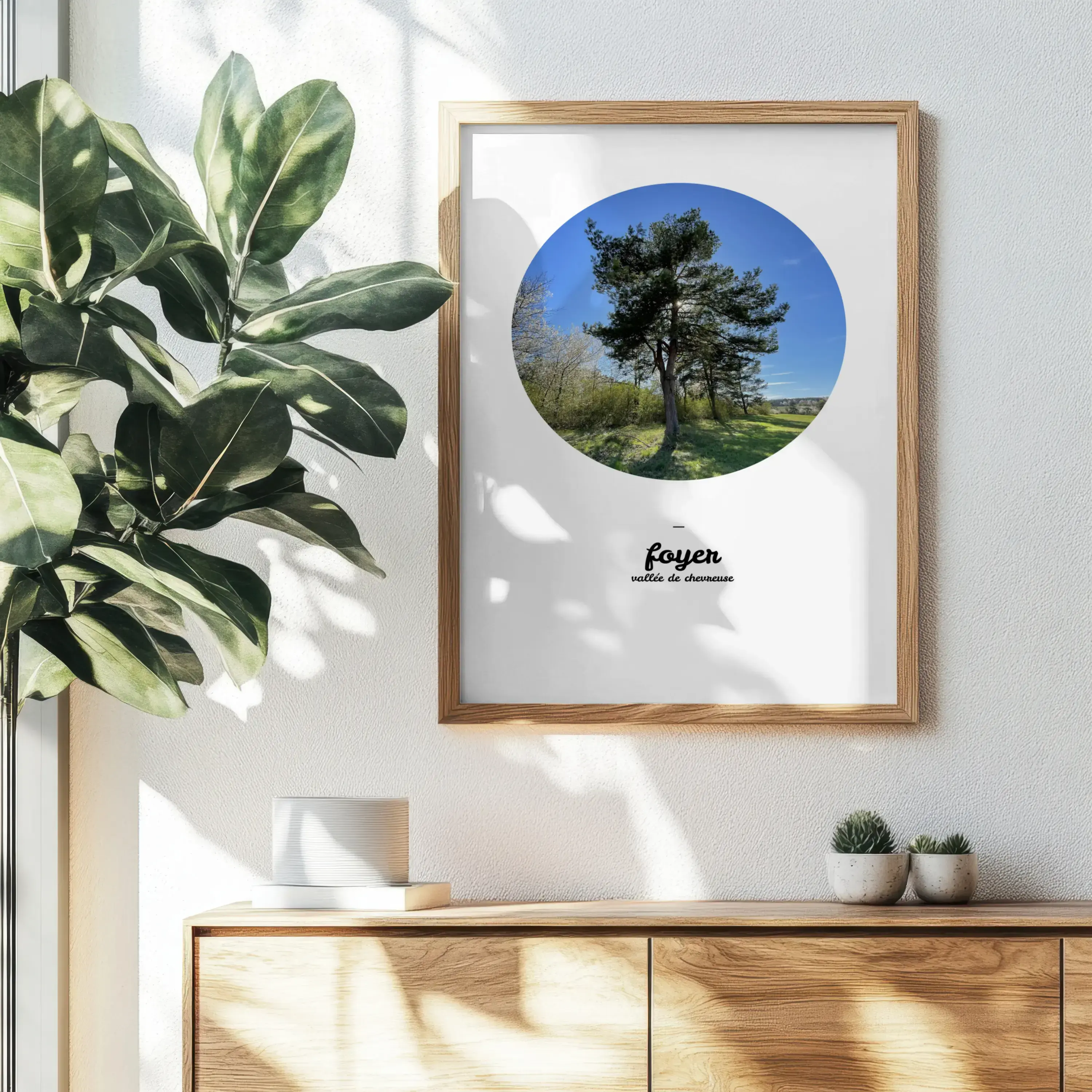 Affiche majestueuse avec photo ronde personnalisable et texte de votre lieu favori.