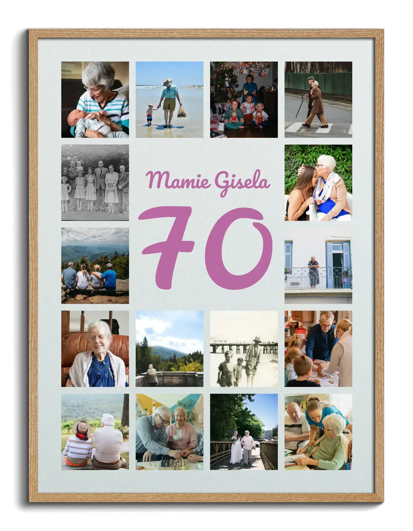 Collage chiffre 70 avec 20–80 photos, personnalisable, pour anniversaire, jubilé, noces de platine