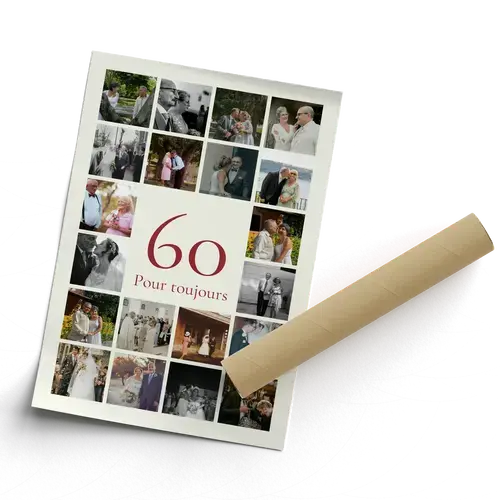Collage 60 personnalisable: nombre, nom, message, photos. Idéal 60 ans, retraite, noces de diamant