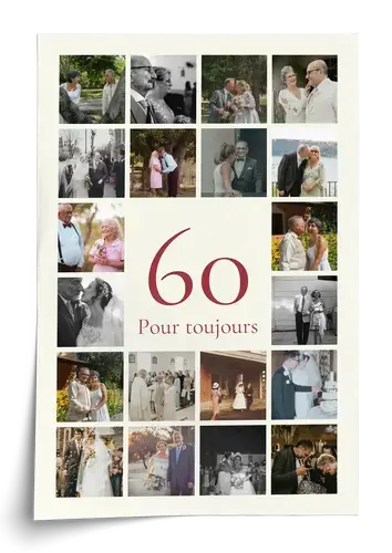 Personnalisez votre collage photo chiffre 60 - cadeau 60 ans, noces de diamant