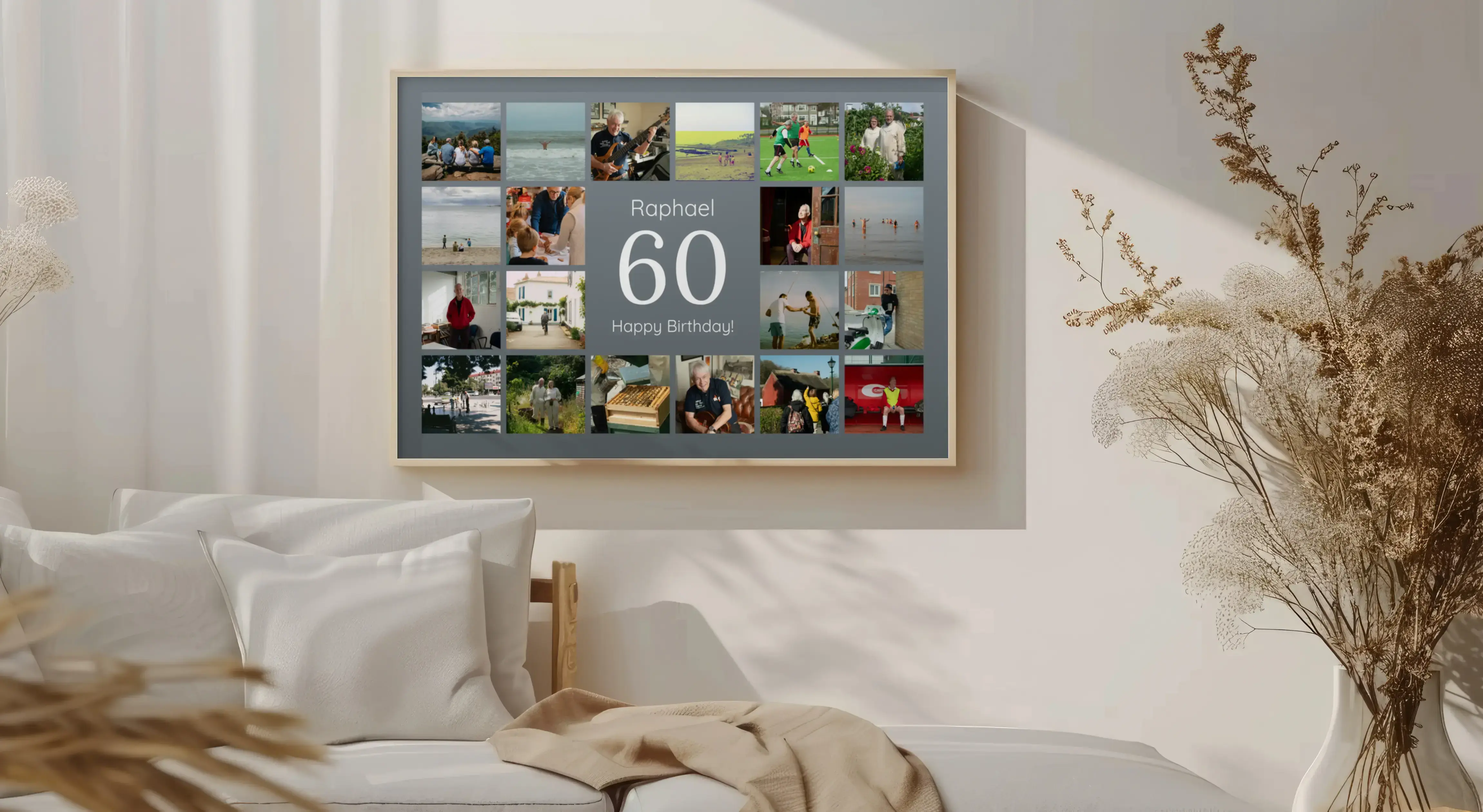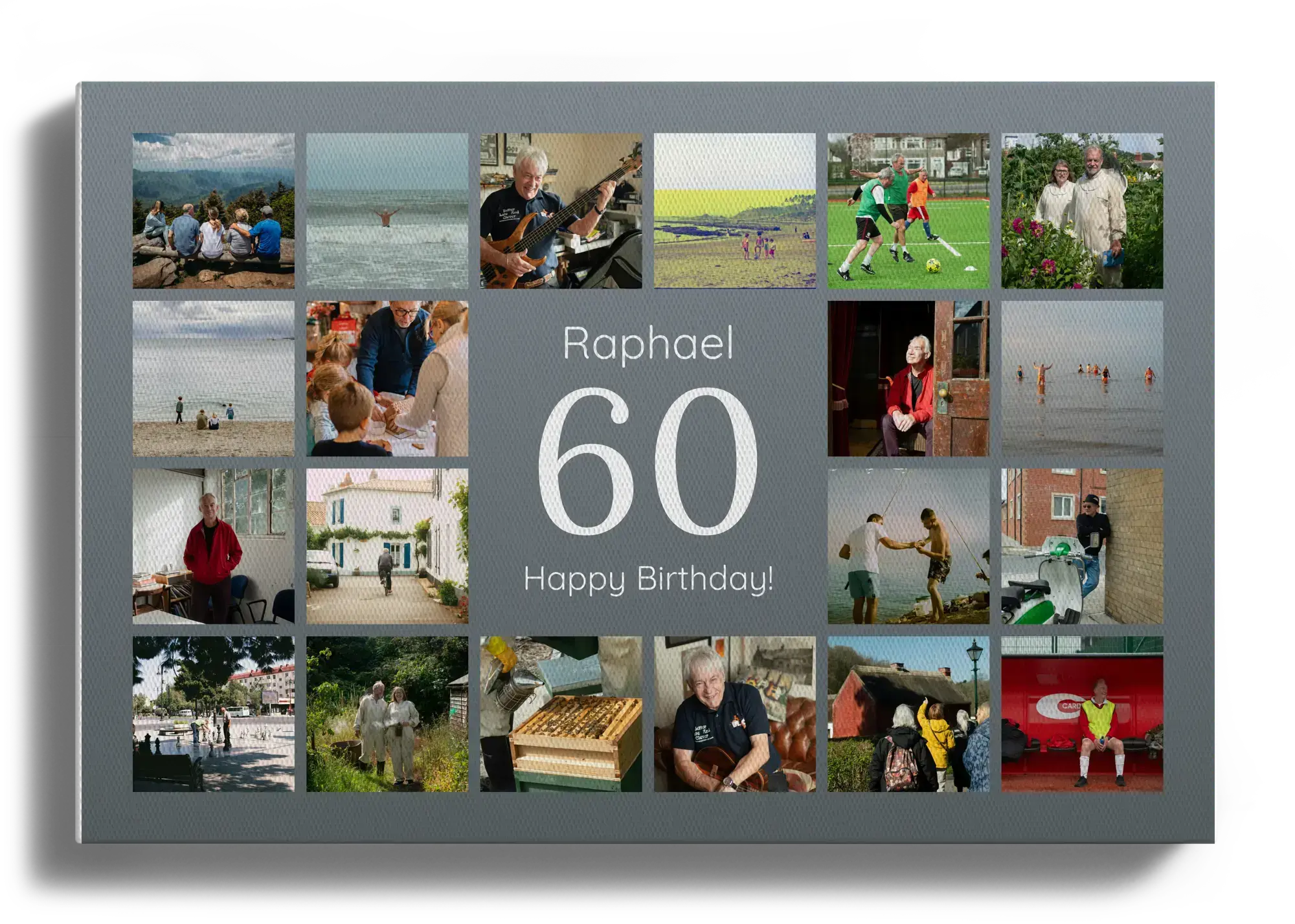 Collage 60 personnalisable: nombre, nom, message, photos. Idéal 60 ans, retraite, noces de diamant