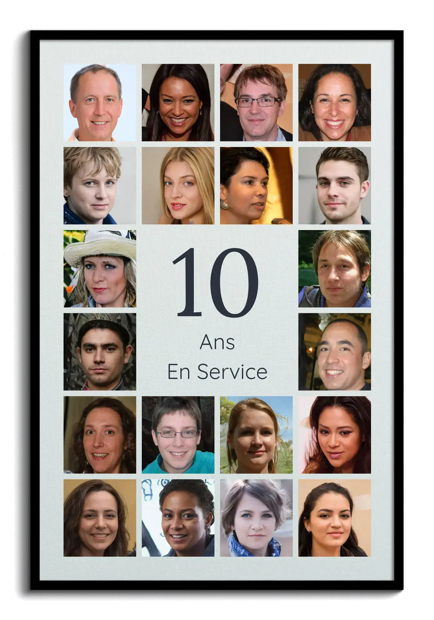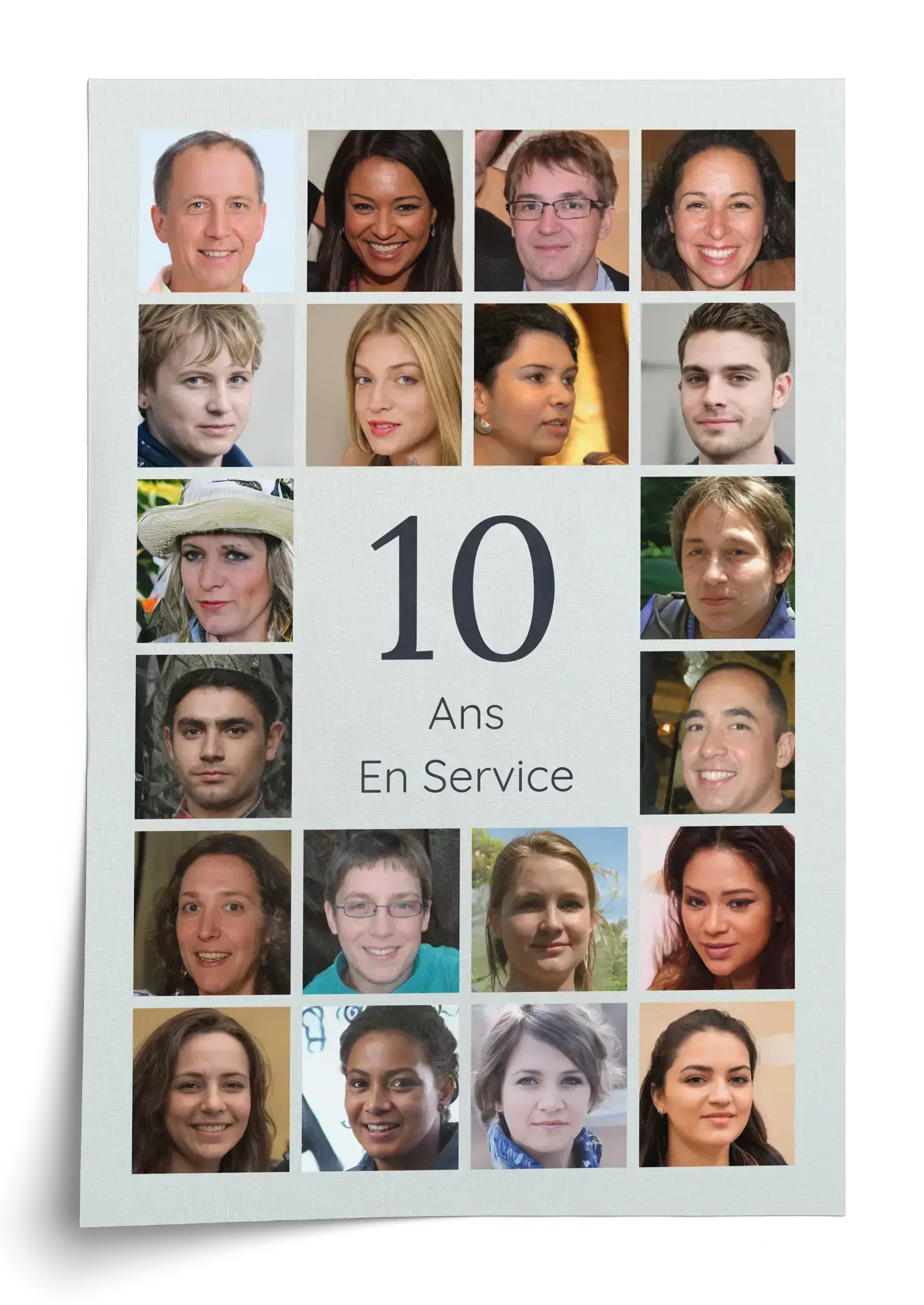 Collage 10 personnalisable: nom, message, 20–80 photos. 10 ans d’entreprise, mariage, amitié.