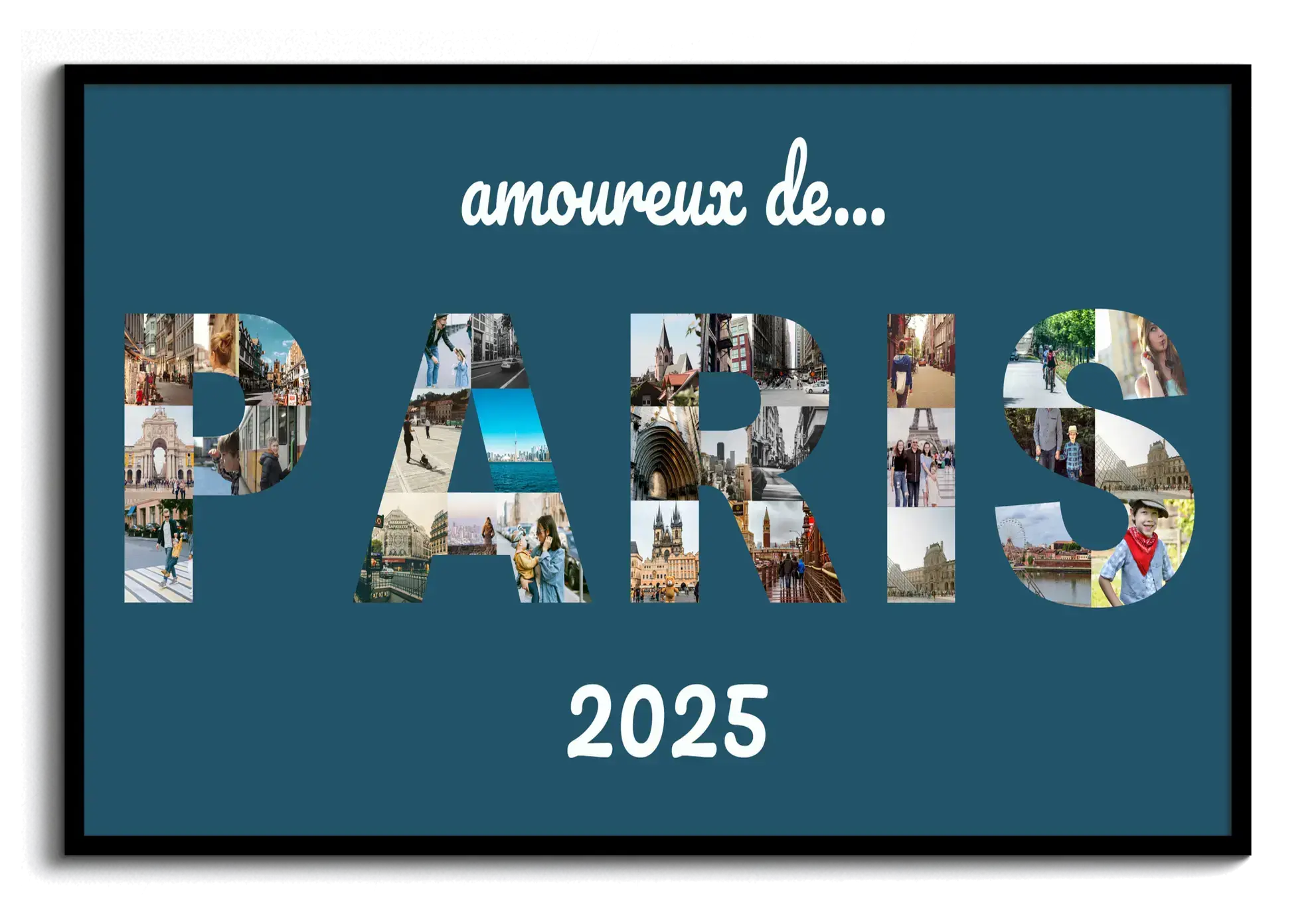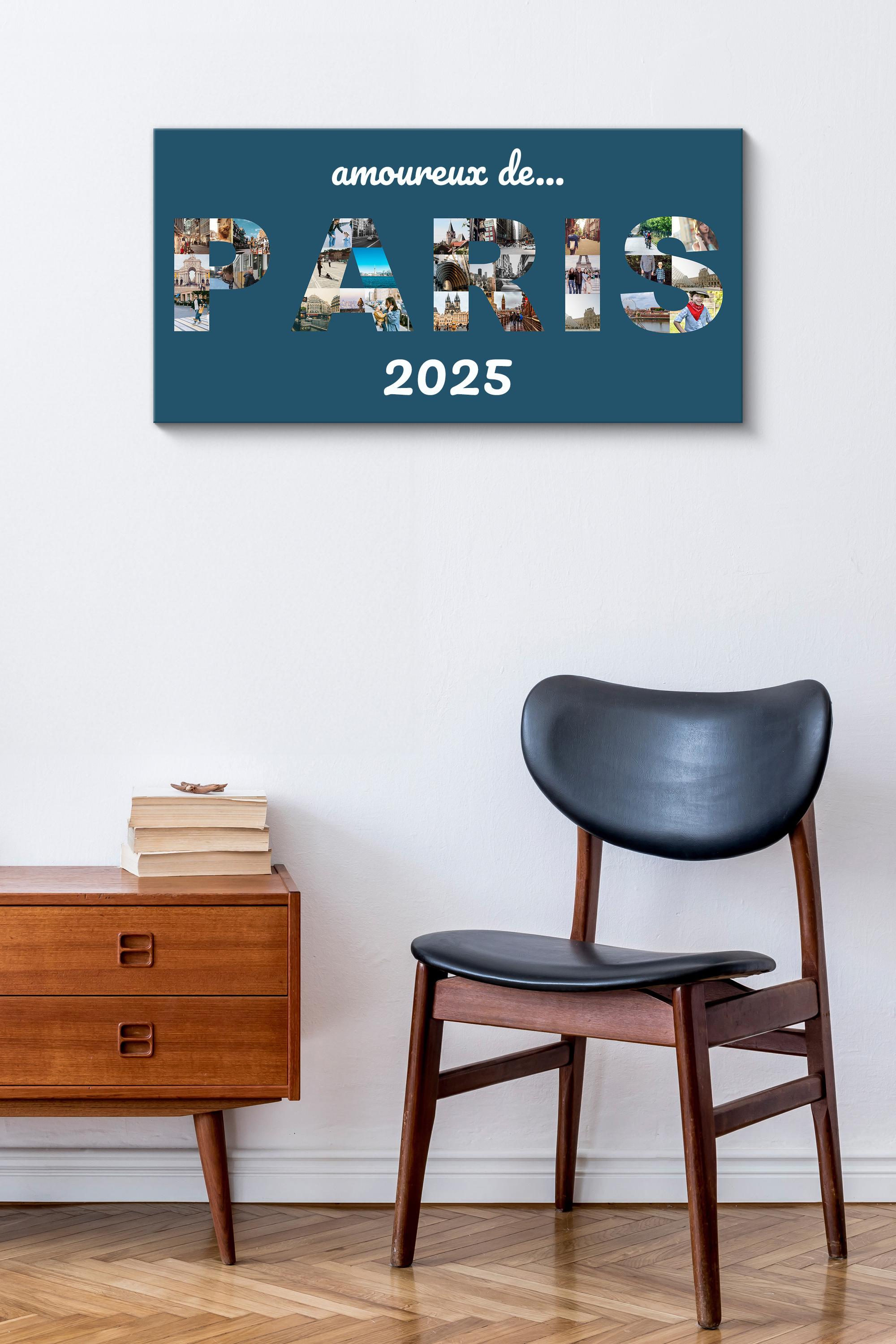 Créez votre collage lettres PARIS sur toile premium avec vos photos de vacances