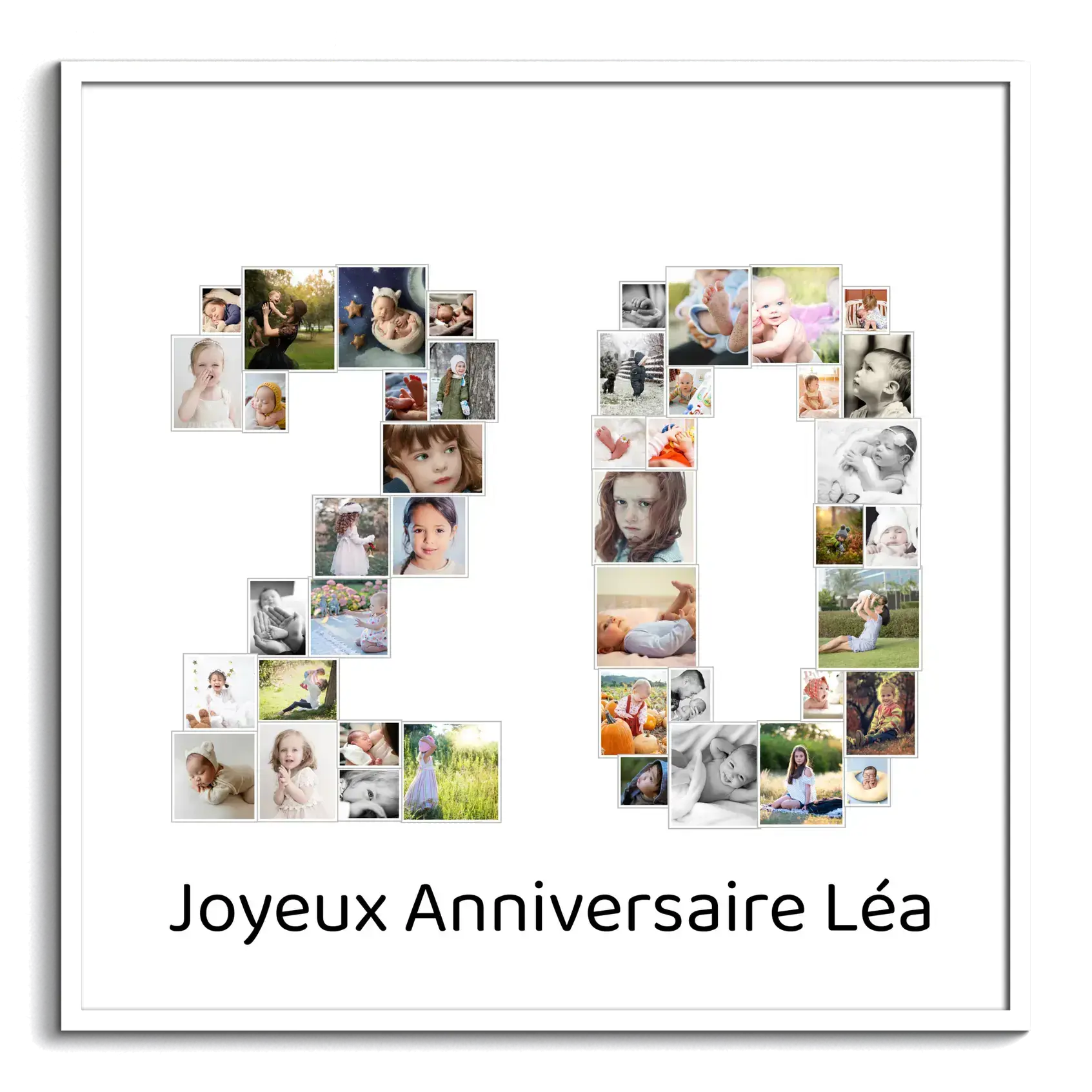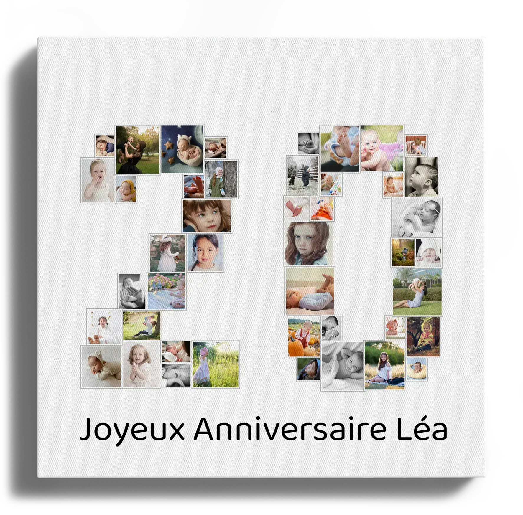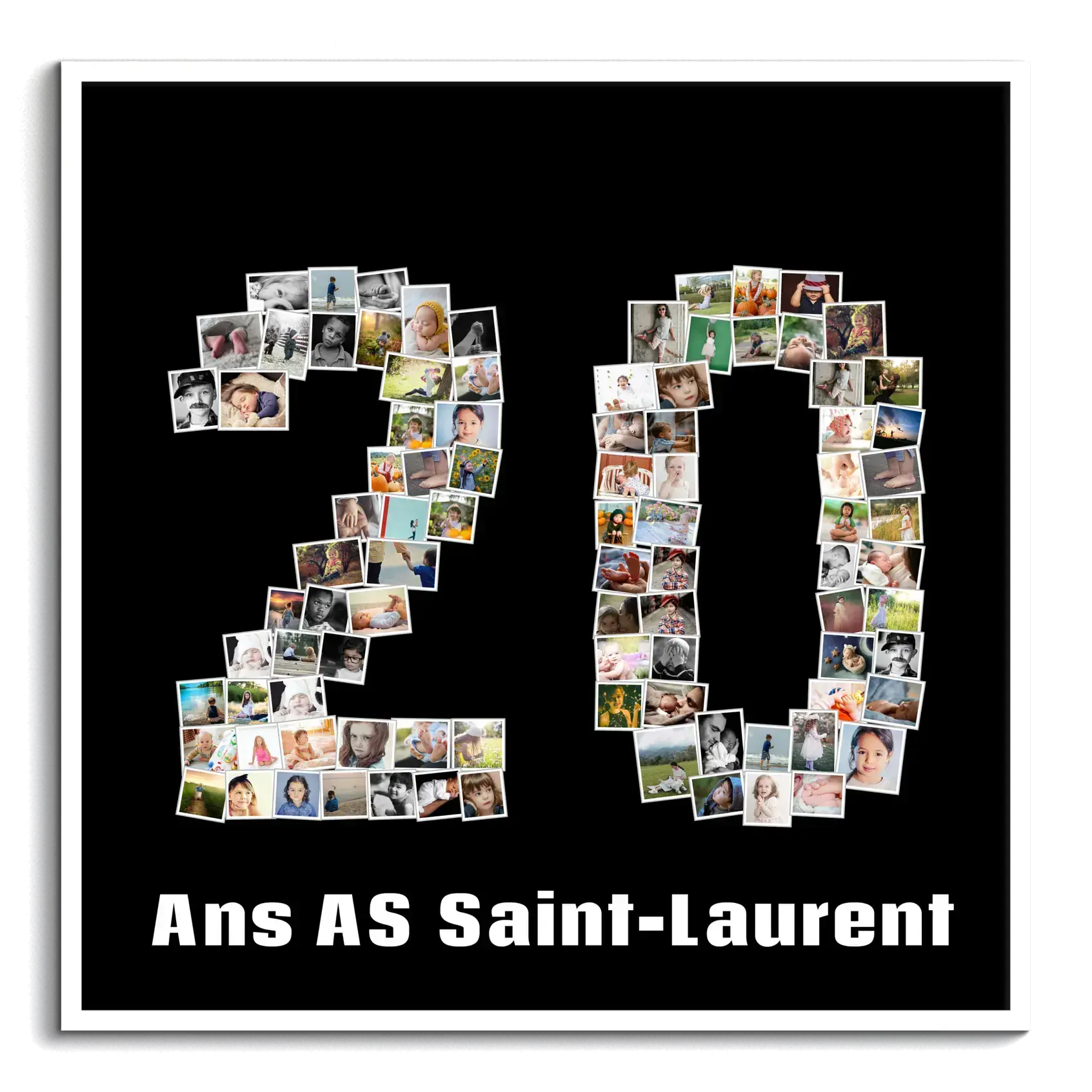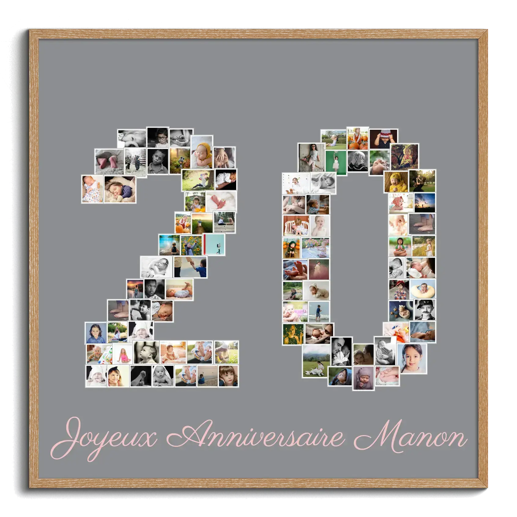 Créez votre propre chef-d'œuvre personnalisé avec notre option de collage photo unique. Imaginez une mosaïque formant le chiffre '20', composée de vos propres clichés. Que ce soit pour fêter un anniversaire marquant, un jubilé professionnel ou un anniversaire de mariage, vous avez la liberté de choisir entre 1 et 100 de vos photos préférées pour créer un effet saisissant.