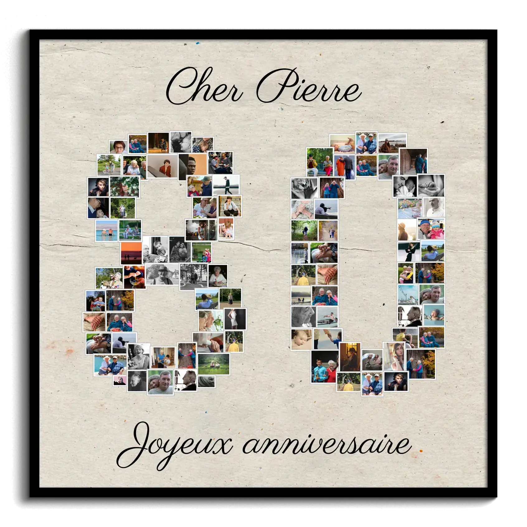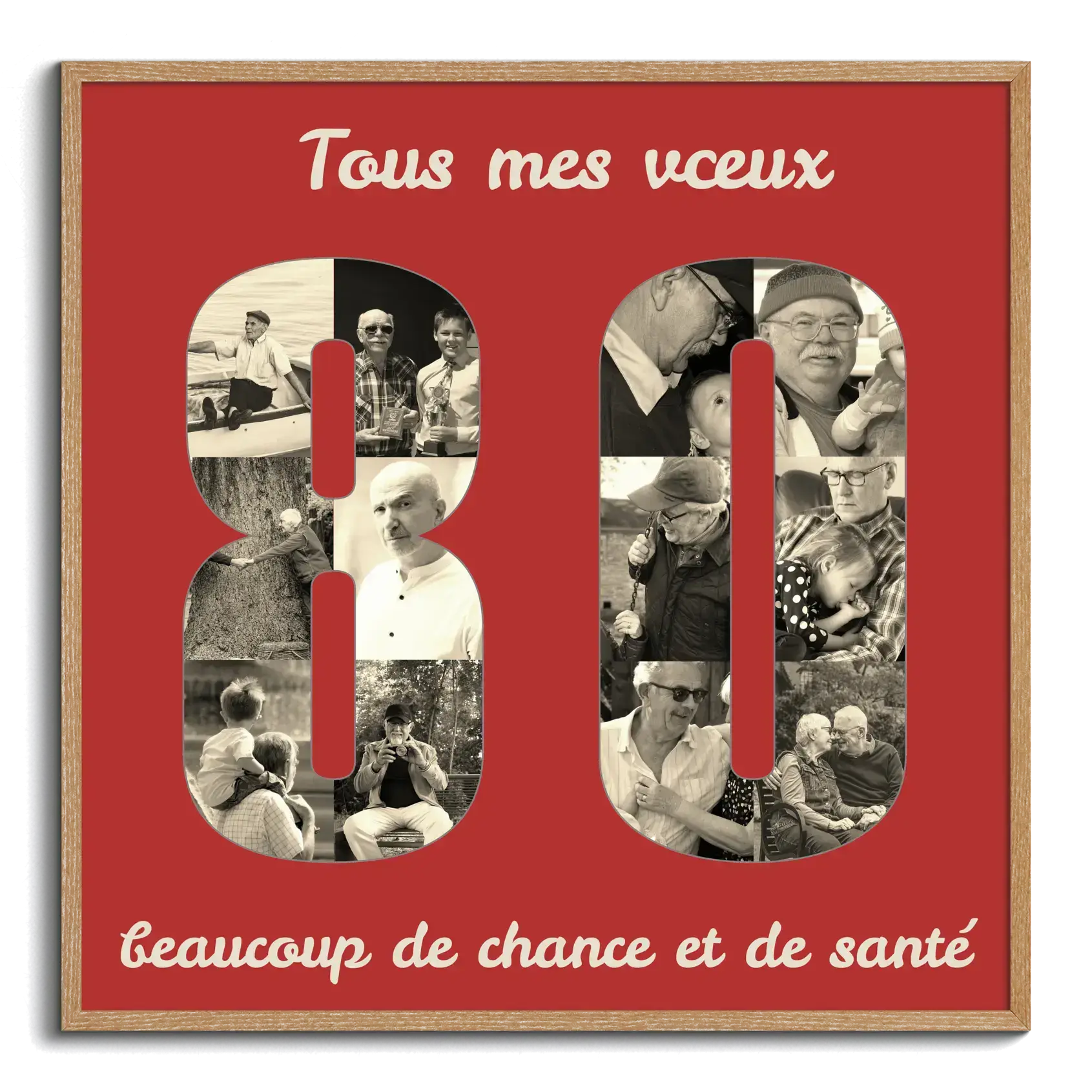 Célébrez 80 ans de souvenirs avec une mosaïque photo unique et personnalisée.