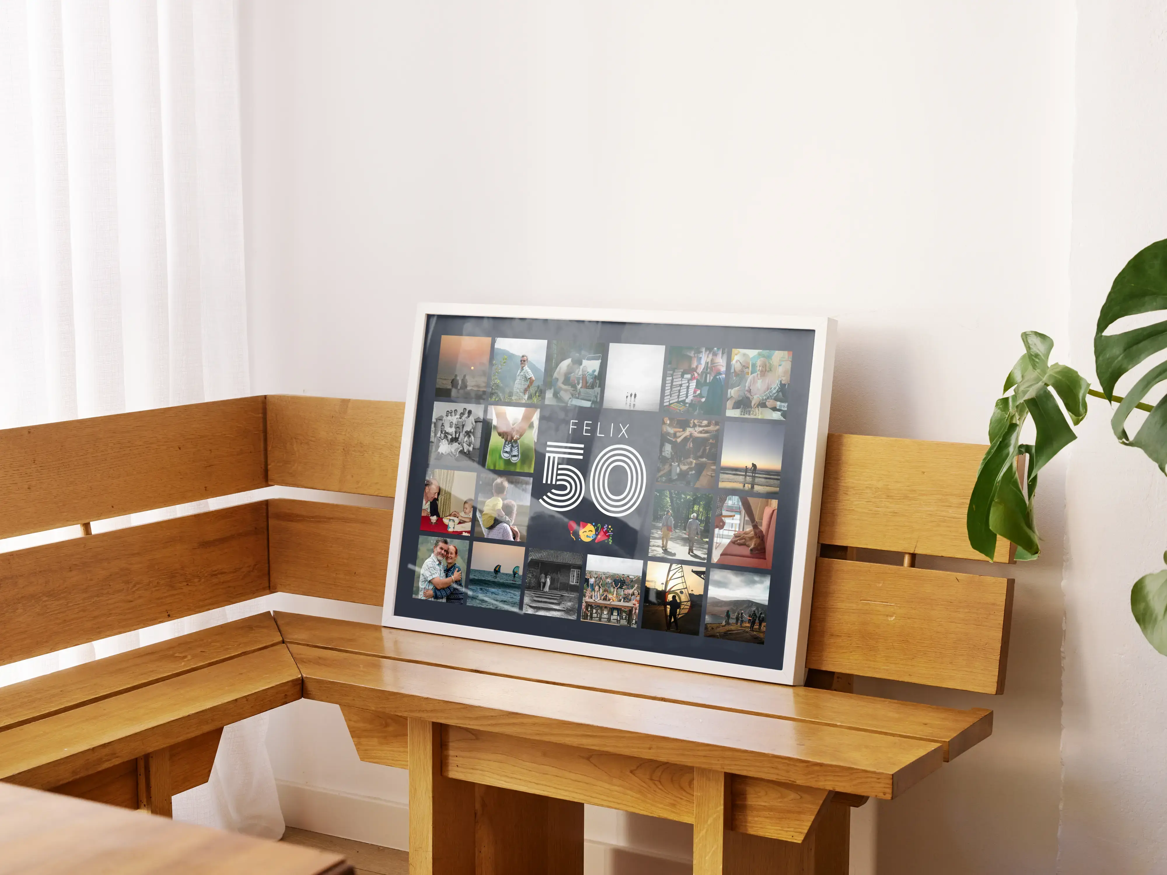 J'ai créé une collage de poster avec 100 photos pour le 50ème anniversaire de mon mari. C'était super facile et j'avais énormément de possibilités pour concevoir le poster. (Format, nombre d'images, disposition des images, taille, etc.) Le poster est vraiment réussi et a été livré rapidement. Absolument top !!