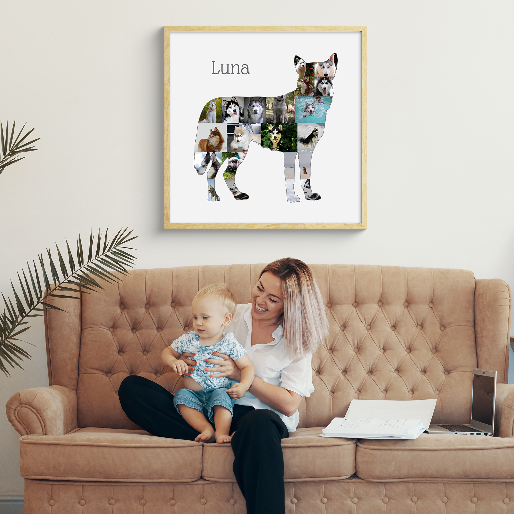 Ce type de collage fait un merveilleux cadeau pour de nombreuses occasions. Offrez-le à l'occasion d'un anniversaire, pour Noël, ou simplement pour célébrer l'amitié spéciale avec votre animal. Surprise garantie pour tous les amoureux des Huskies.