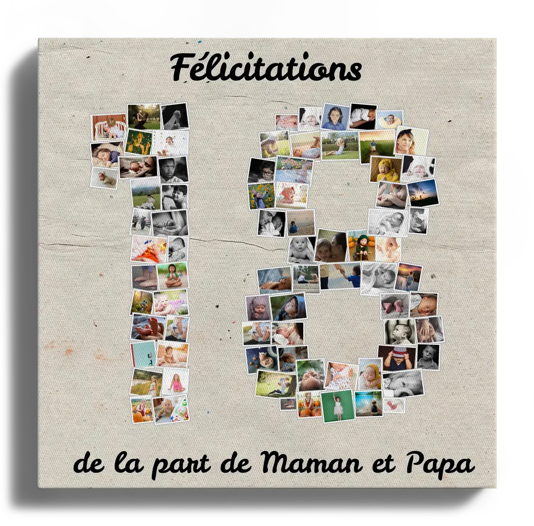 Collage "18" : célébrez la majorité avec style, jusqu'à 100 souvenirs en une œuvre unique.