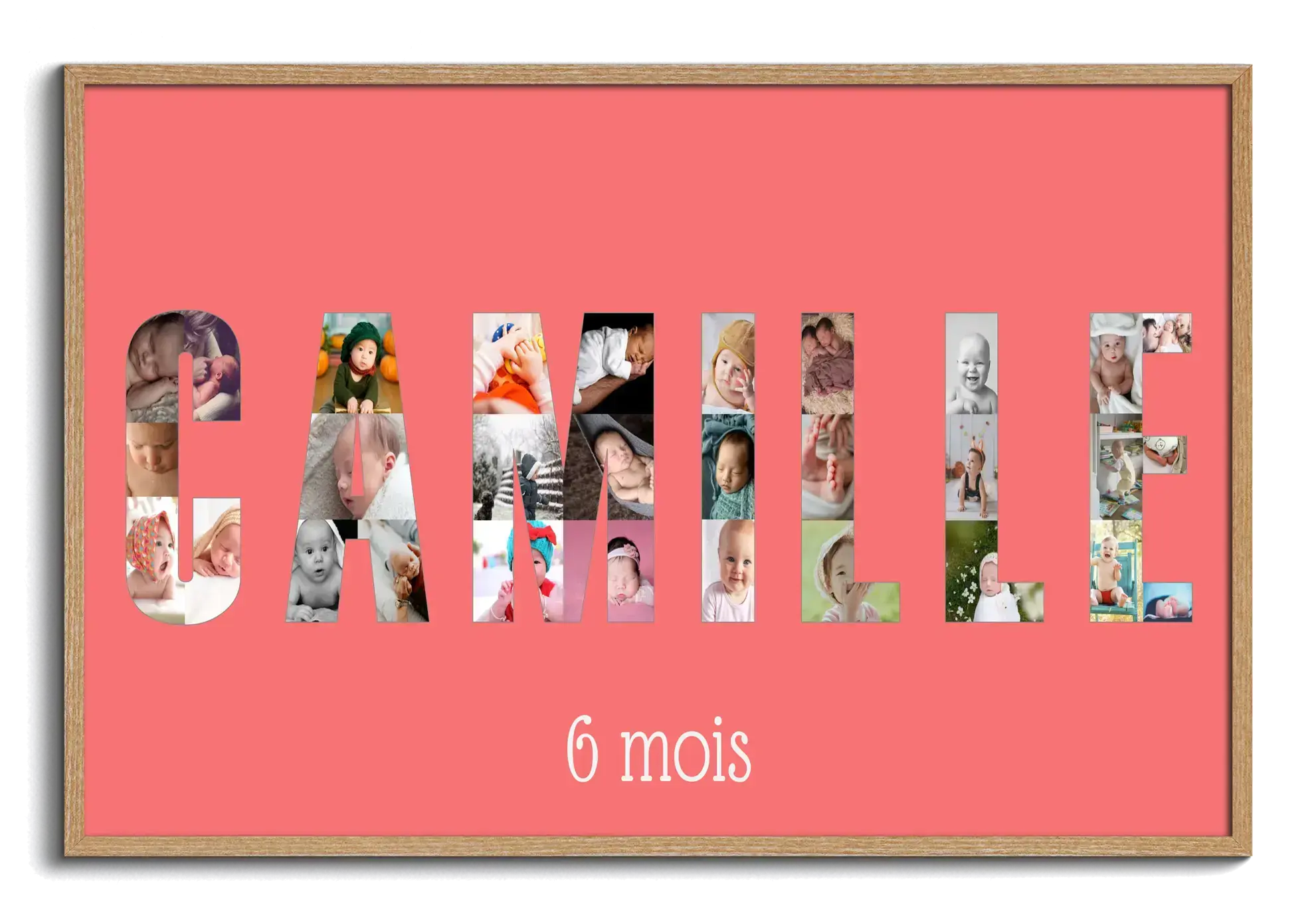 Collage Prénom Bébé en Photos - 6 Mois - Personnalisable Chambre Enfant