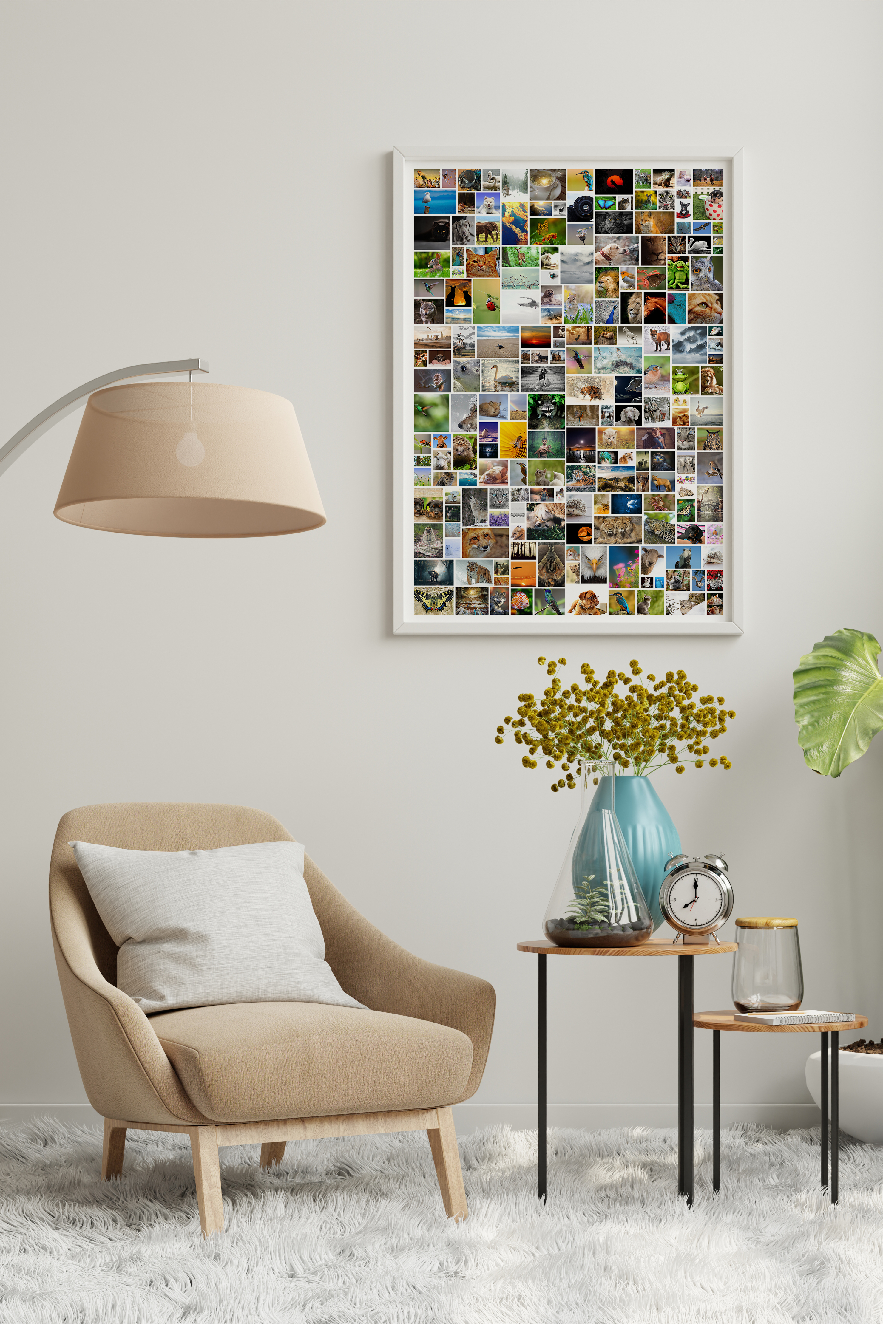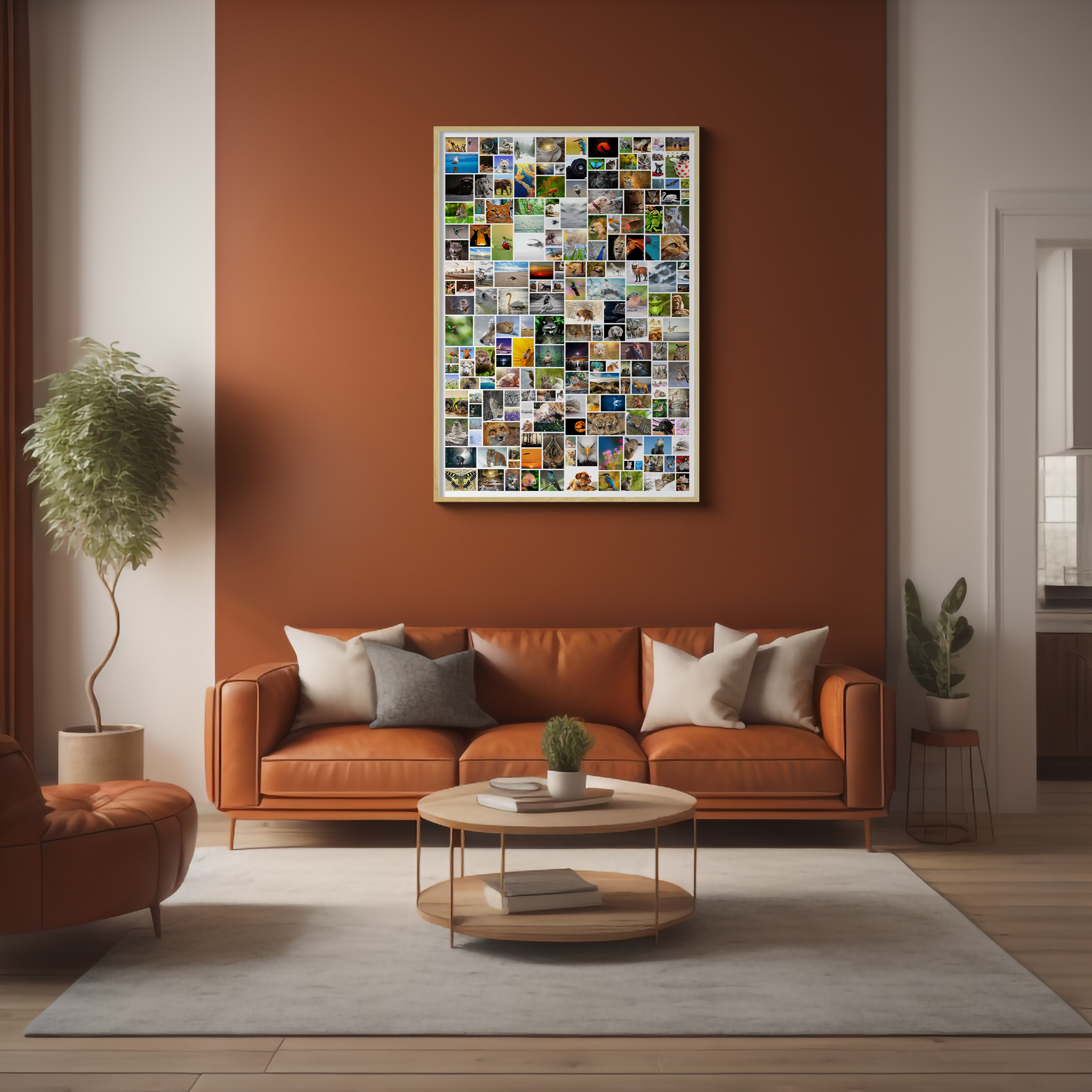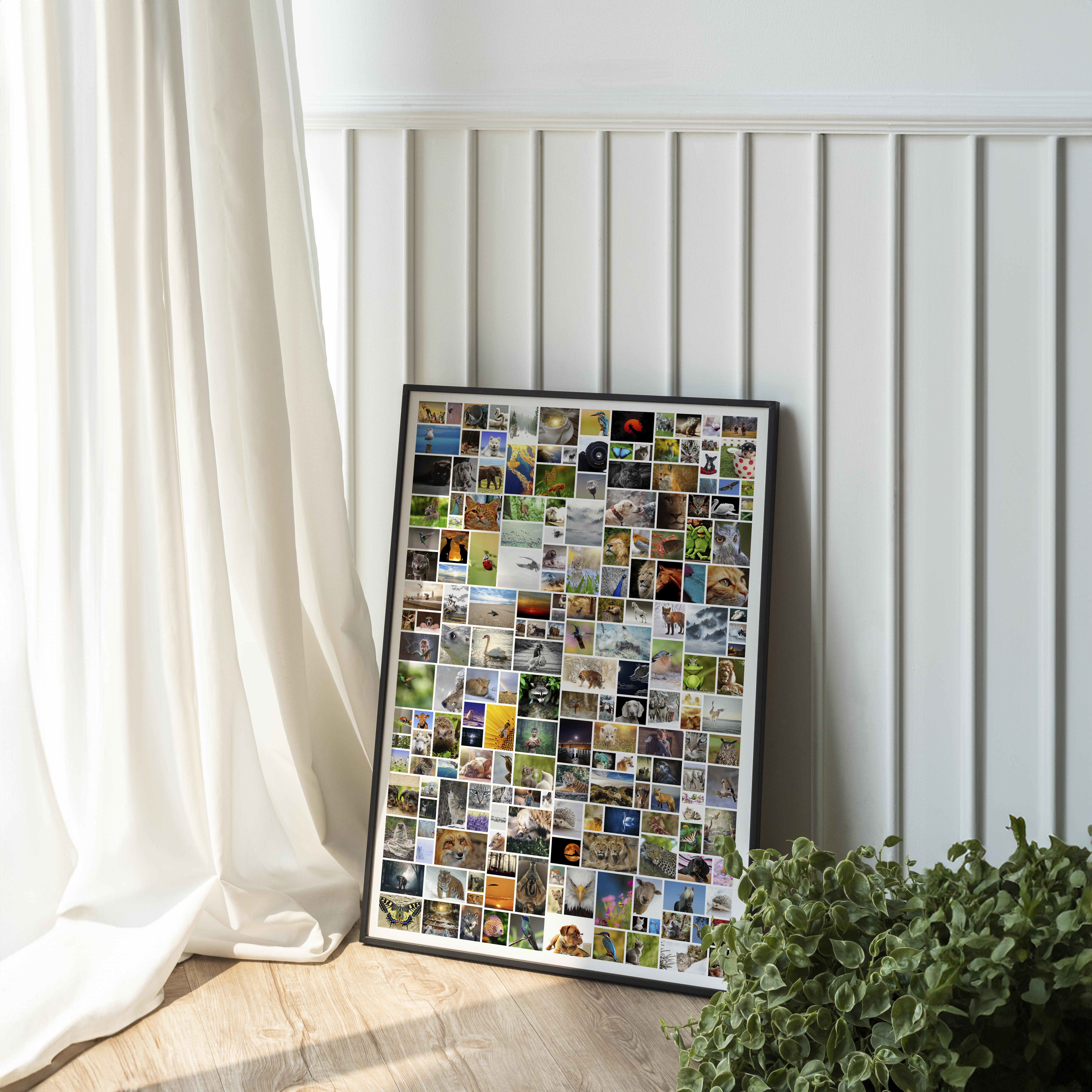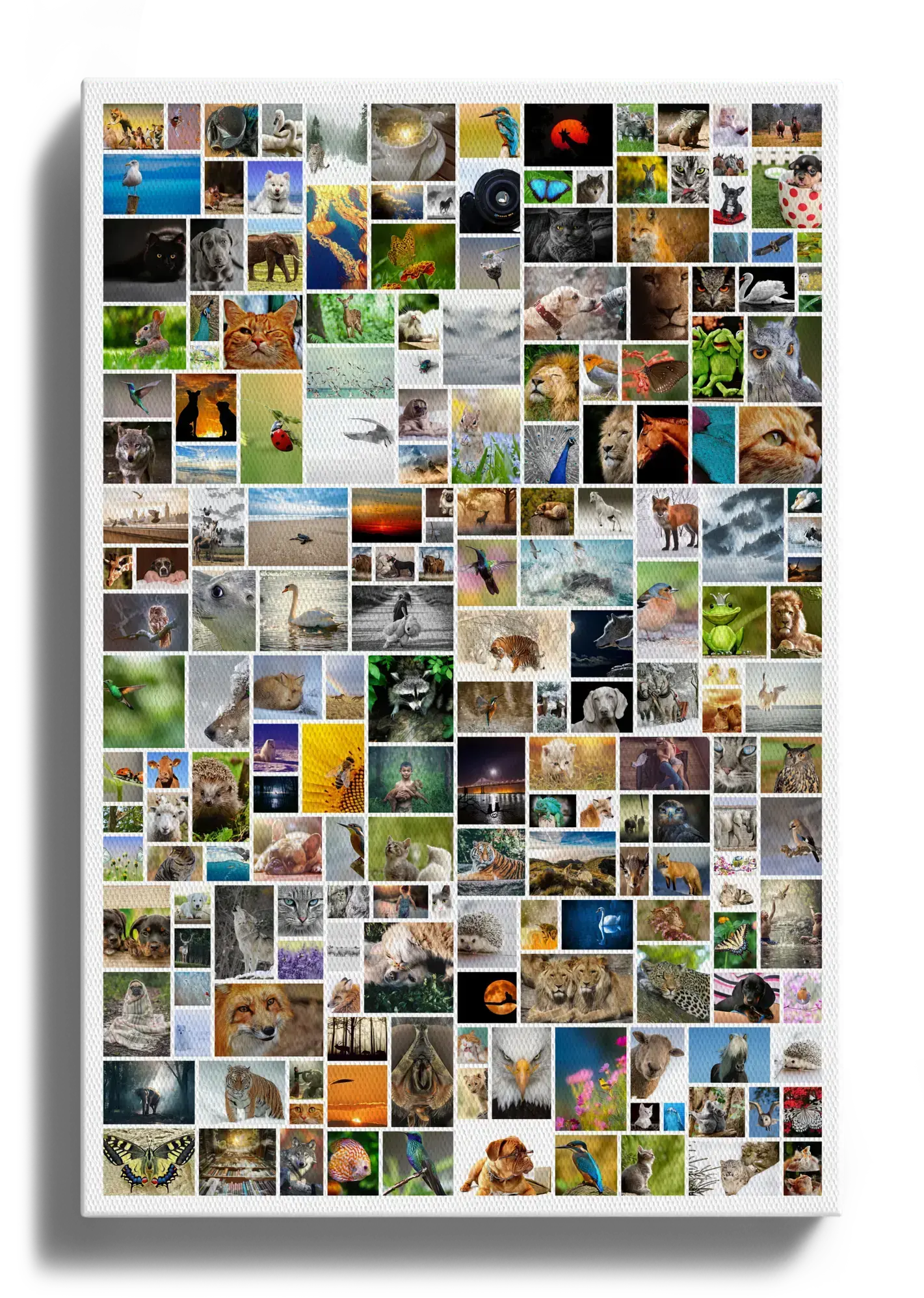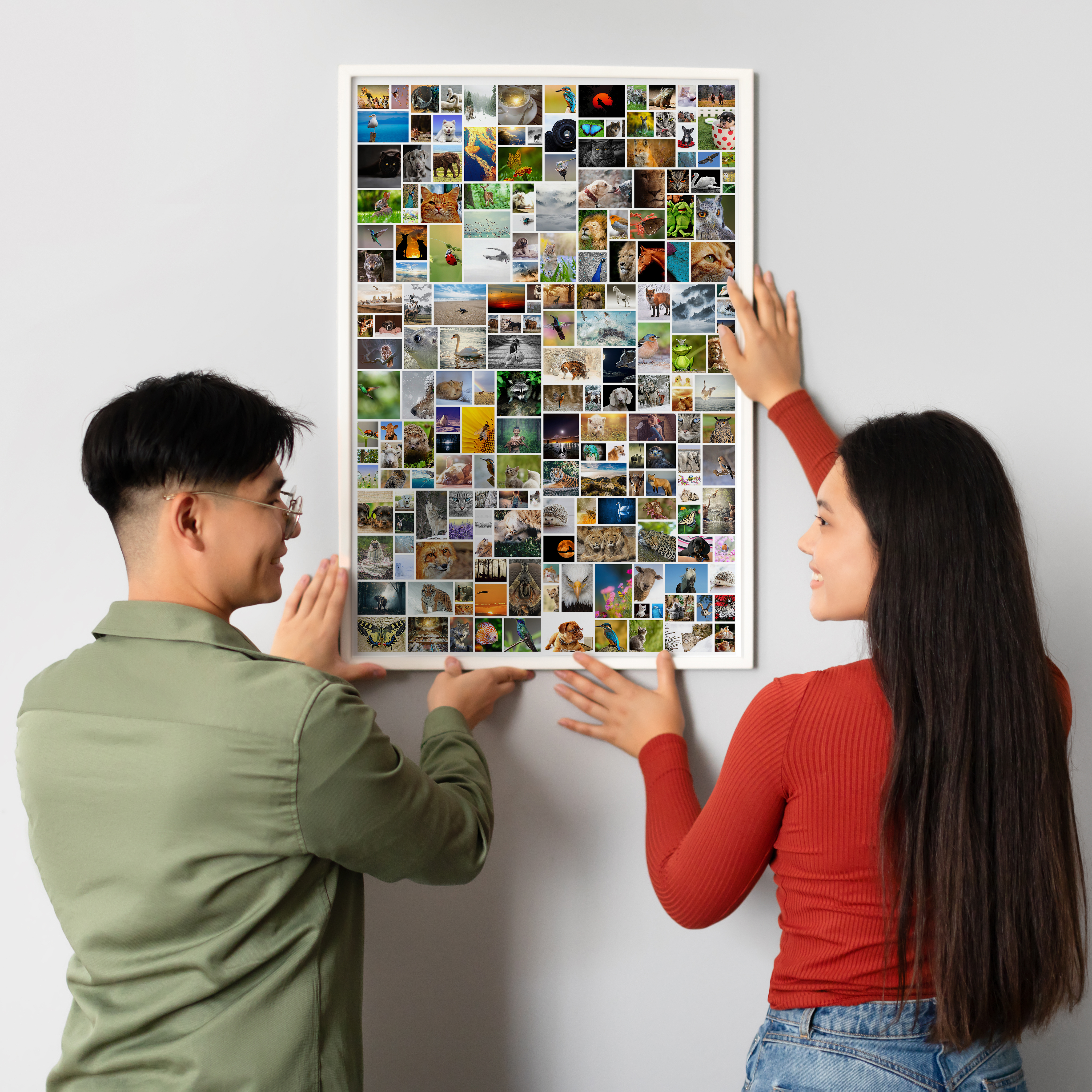 Créez votre propre pièce d'art unique avec notre service de création de collages photo personnalisables. Ce produit vous permet de réaliser une magnifique composition photo au format portrait avec une disposition libre de vos images. Vous pouvez intégrer jusqu'à 200 photos de tailles variées pour un effet époustouflant. Ce collage, en format mural géant, est idéal pour la décoration intérieure ou comme cadeau personnalisé.