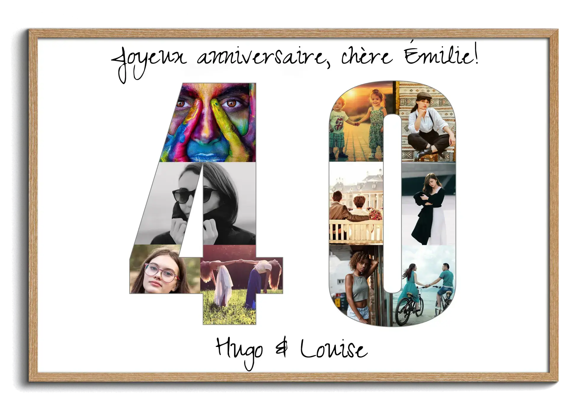 Collage Photo "40" pour Anniversaire ou Événement - Personnalisez et Offrez !