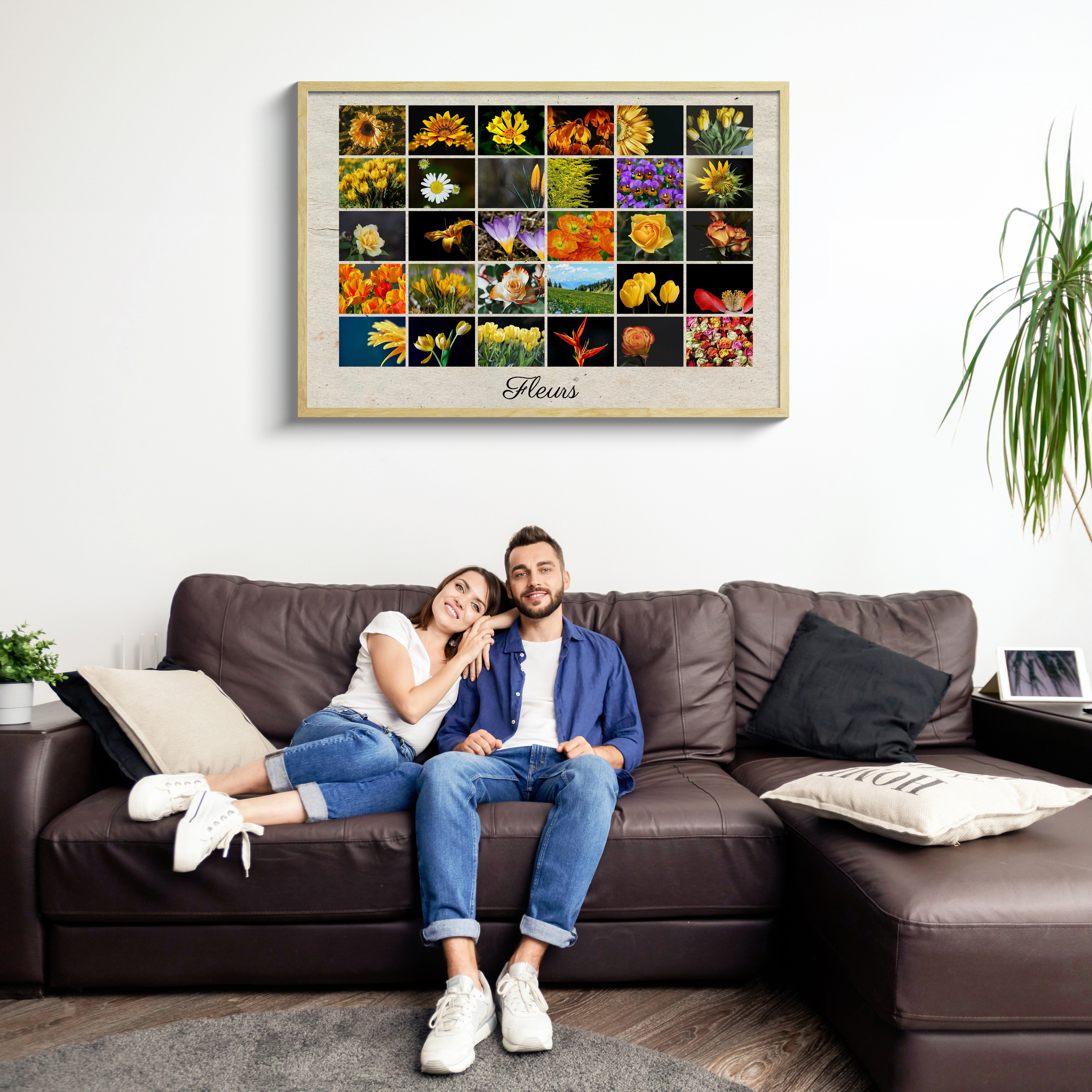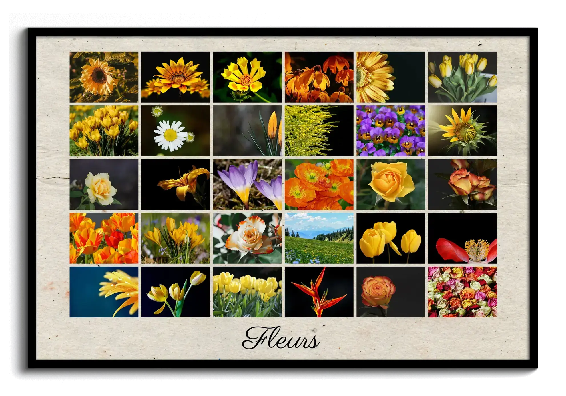 Poster collage photo en grille fleurs - personnalisez vos photos et votre texte
