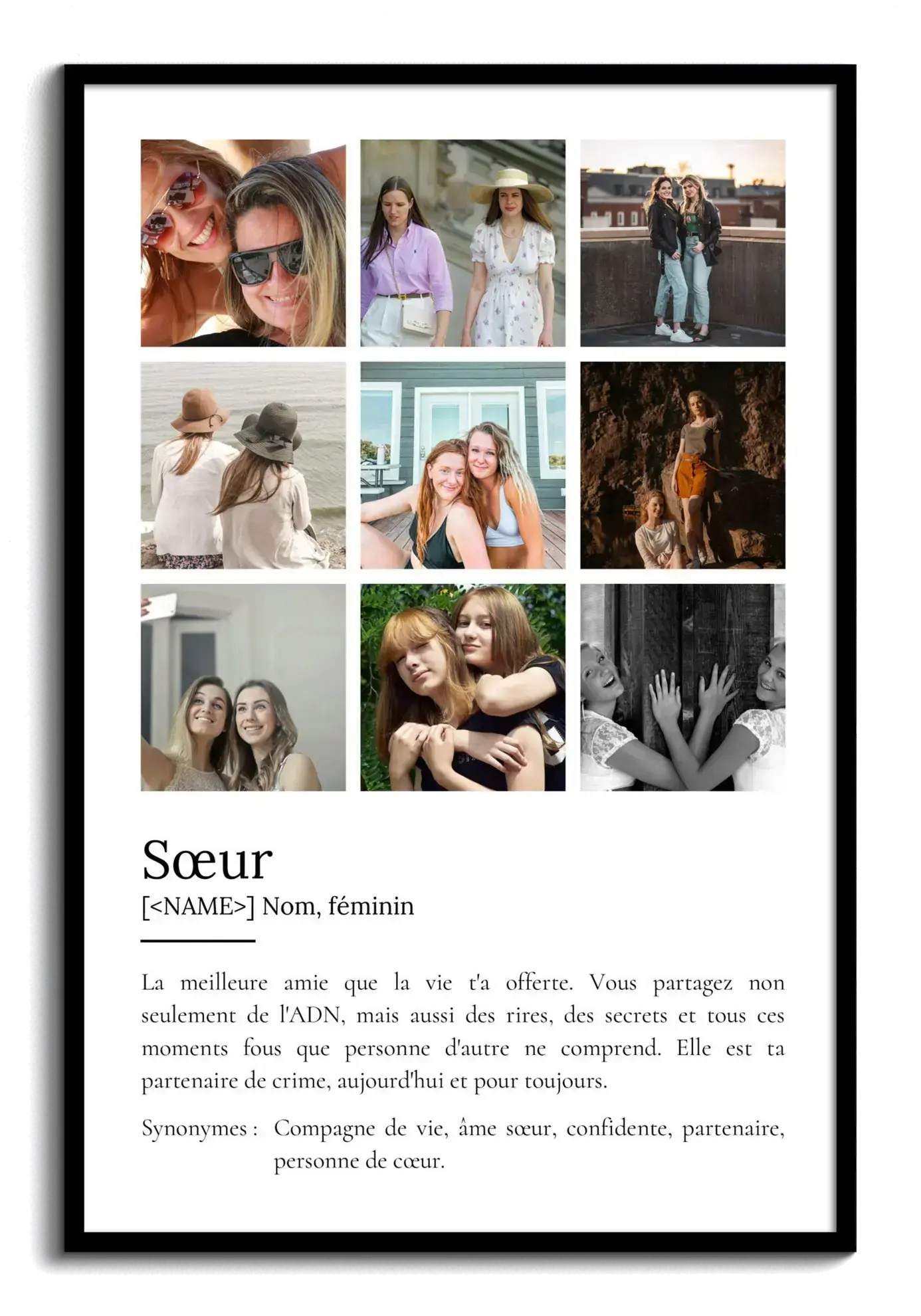 Poster Définition Personnalisé 'Sœur' - Cadeau Unique avec Photos et Texte Adaptable