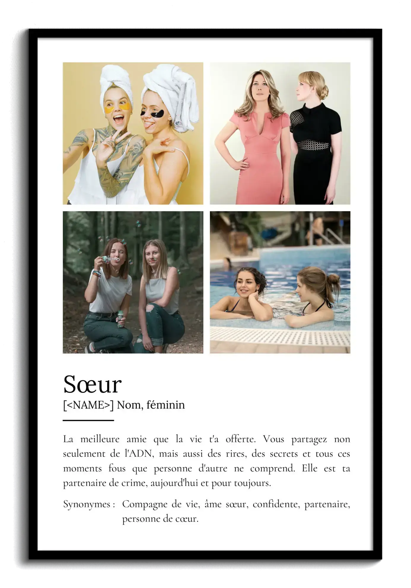 Poster Définition Personnalisé 'Sœur' - Cadeau Unique avec Photos et Texte Adaptable