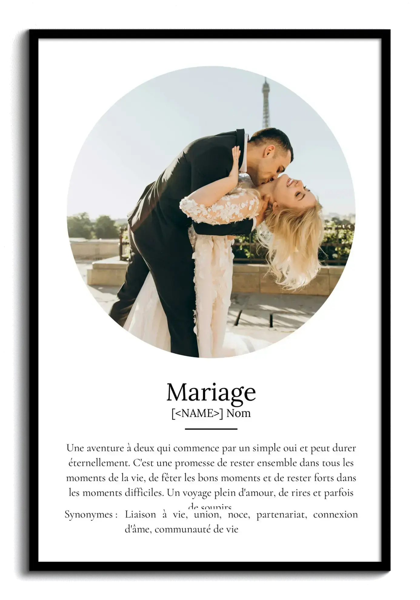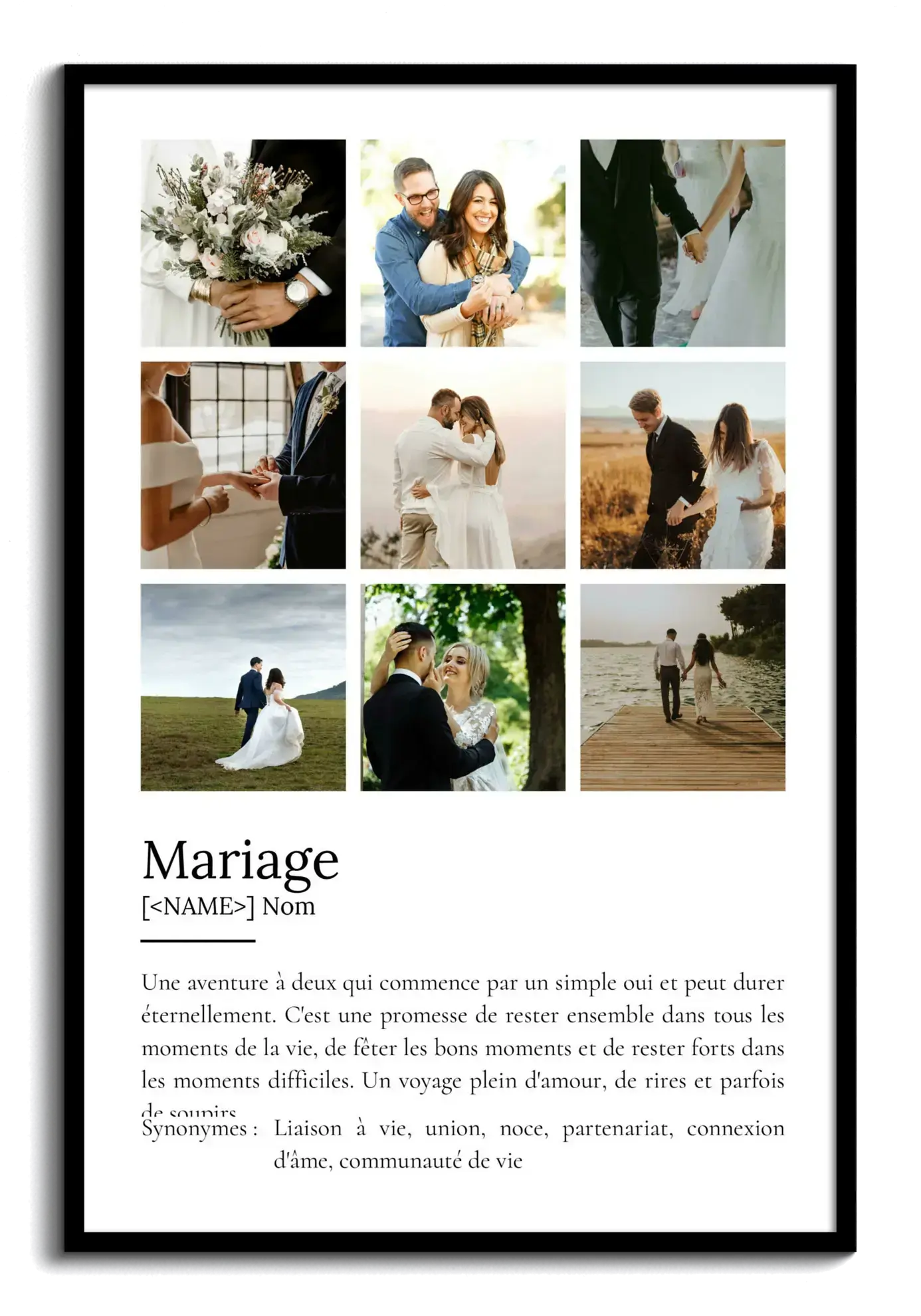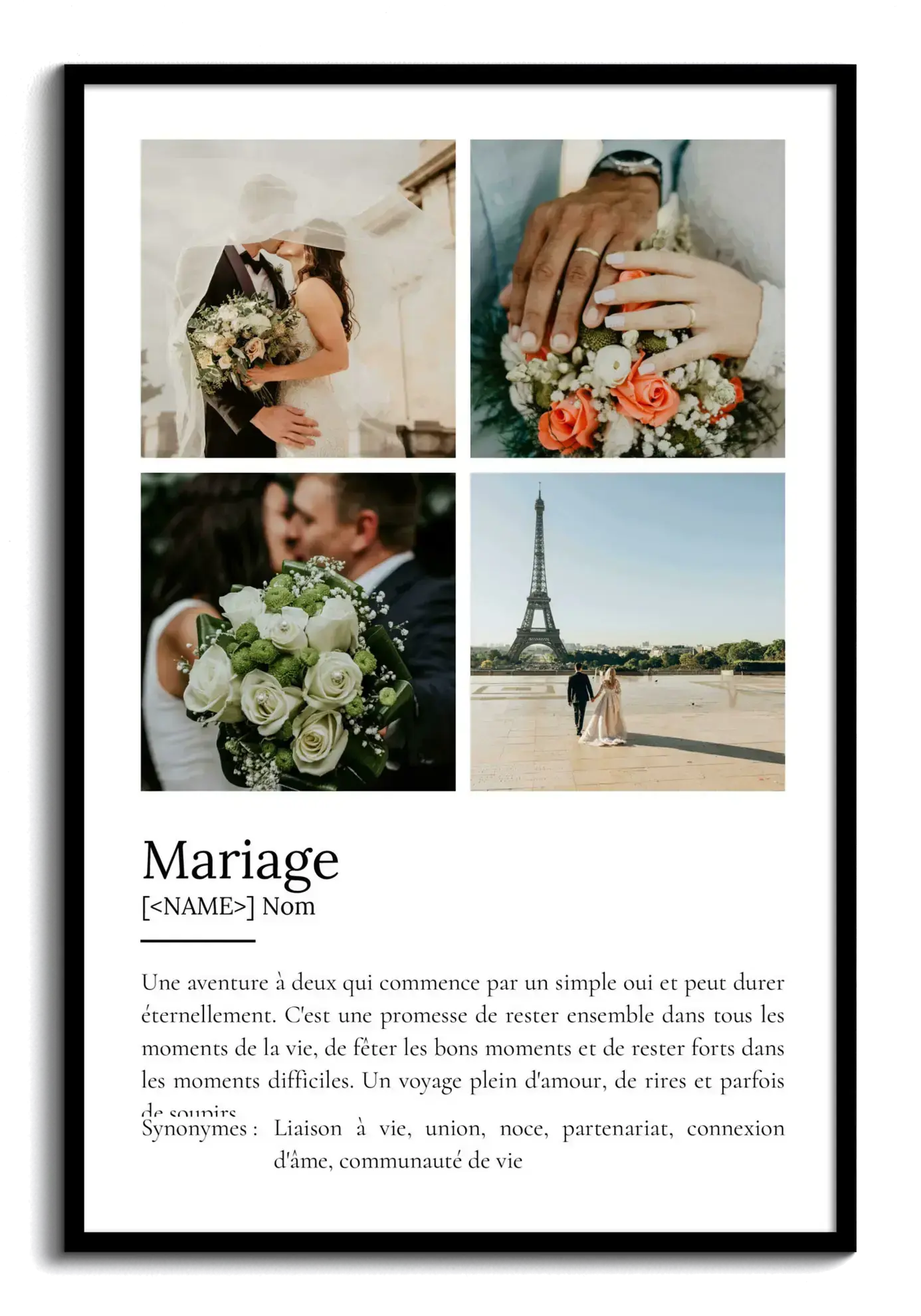 Poster Définition Mariage Personnalisé avec Photos et Texte - Cadeau Idée Unique