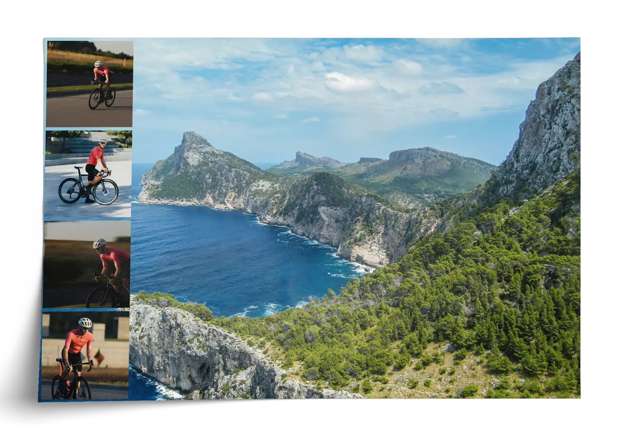 Modèle vélo de route pour immortaliser sorties, tours et temps forts en collage photo.