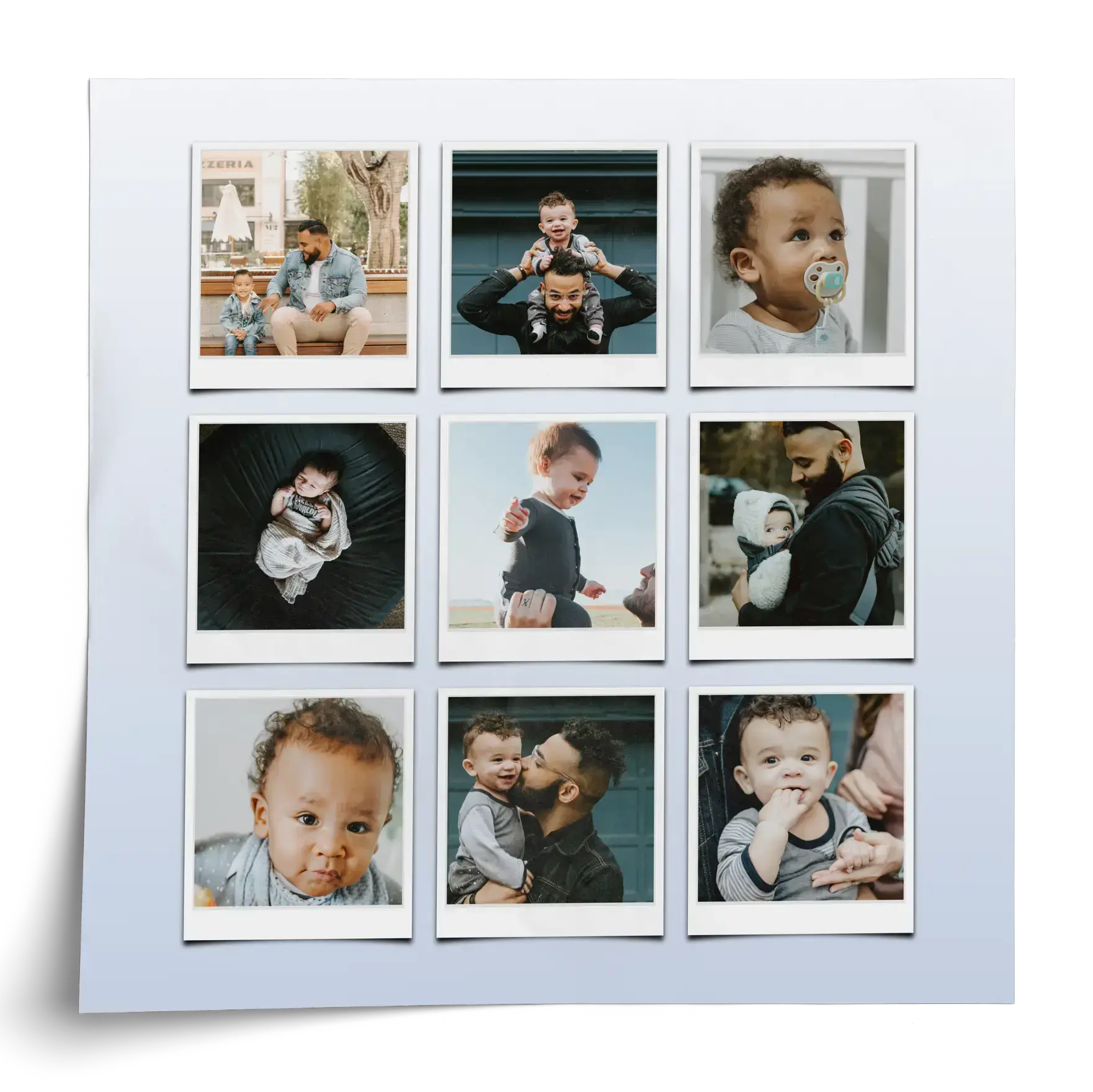 Créez et commandez tout de suite votre affiche personnalisée. Exemple: un tirage dédié à papa, composé des photos des enfants et petits-enfants, de week-ends, vacances et petites scènes du quotidien. Choisissez une mise en page cœur, texte ou chiffres, ajoutez le message Merci Papa et créez un souvenir marquant.