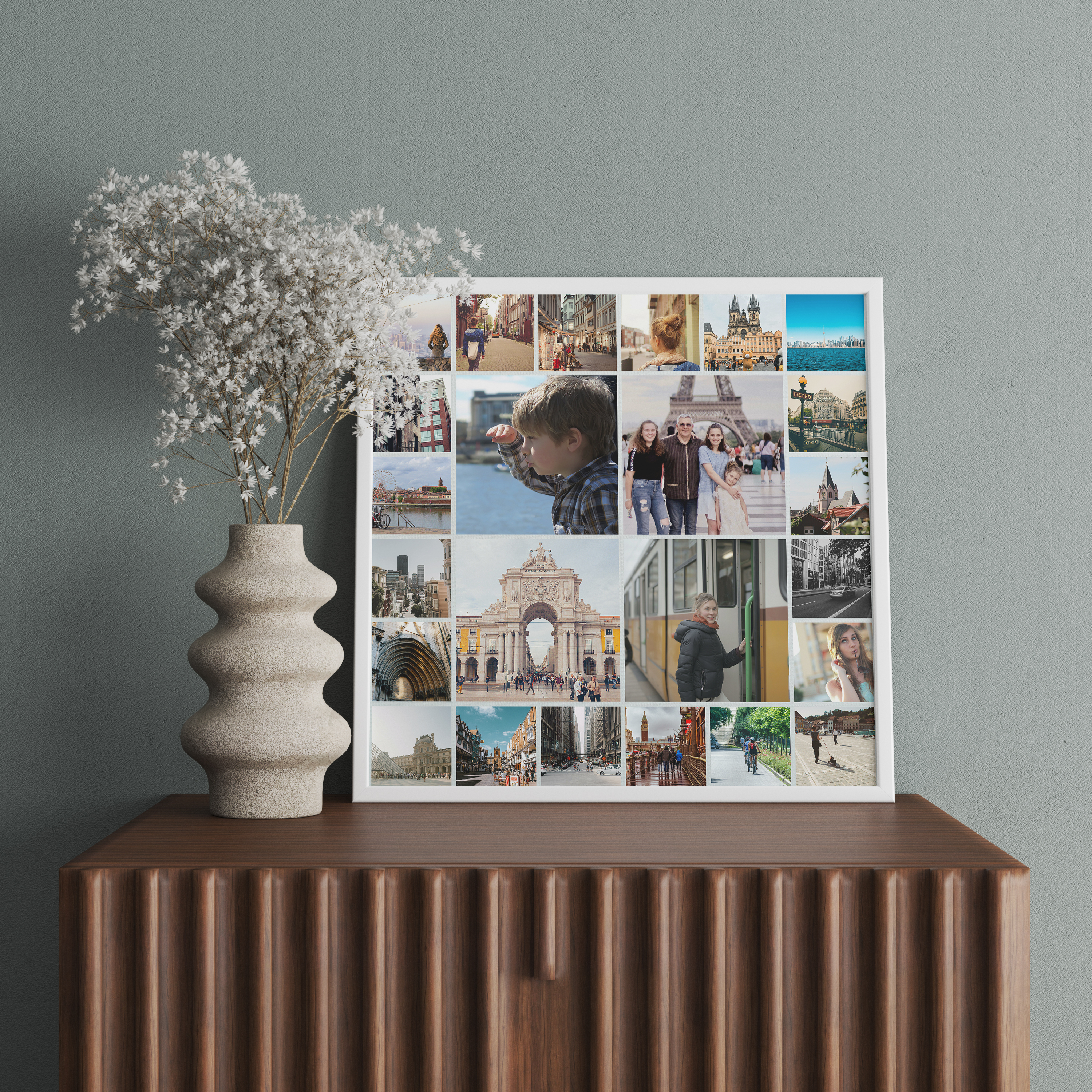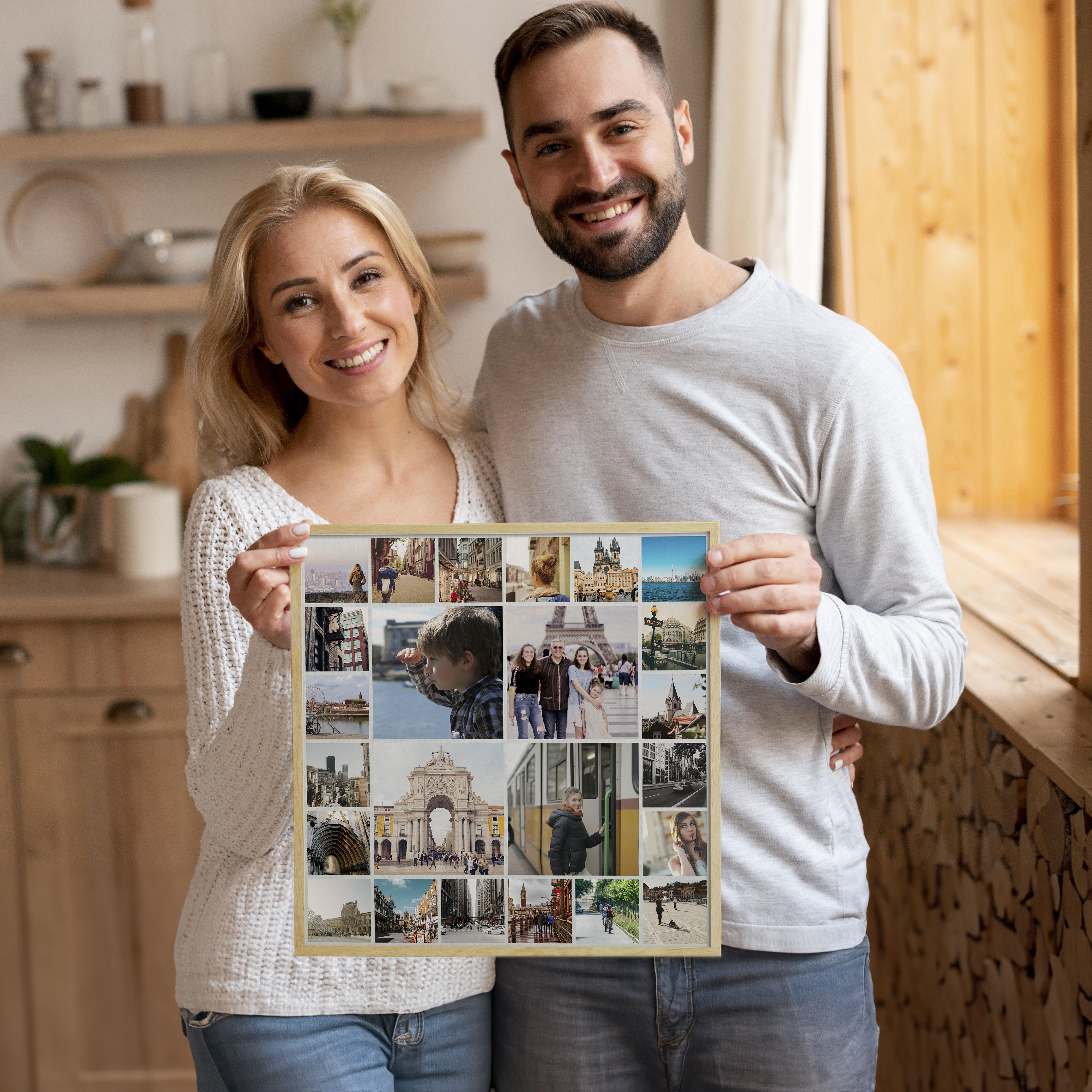 Réaliser une collage photo avec nous est un jeu d'enfant. Sélectionnez une des nombreuses options de conception, téléchargez vos photos, ajustez l'emplacement et la taille des images selon vos envies et finalisez votre œuvre. Vous pouvez ensuite choisir de la commander sous forme de poster, de cadre, de toile, d'Alu-Dibond, d'acrylique ou même de la télécharger.
