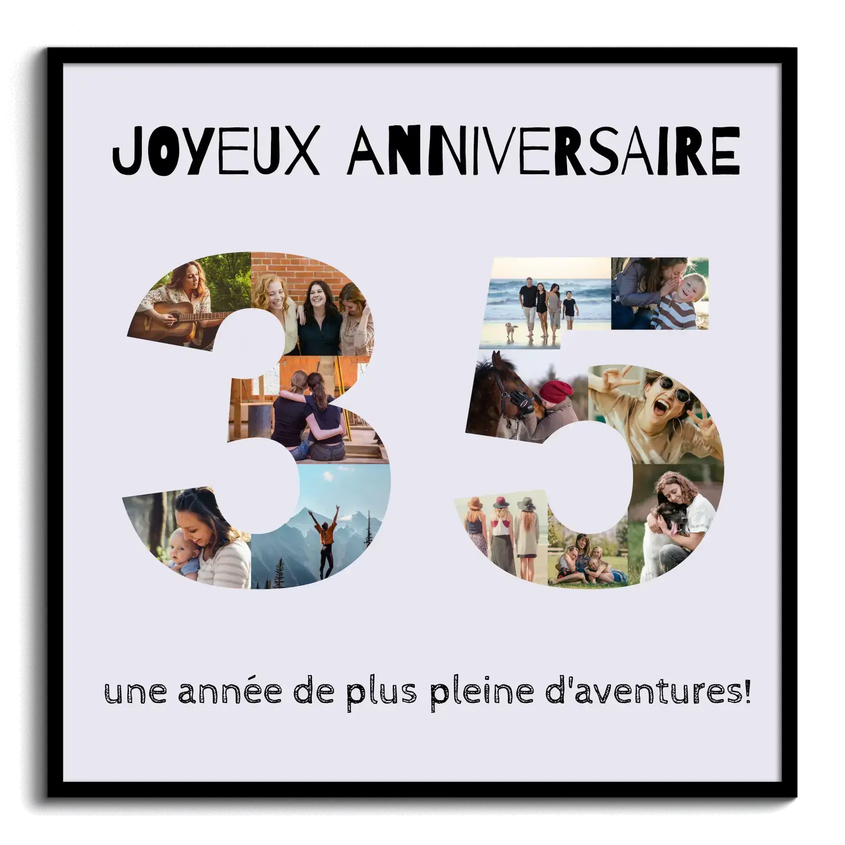 Une collage photo en "35" pour un anniversaire plein d'aventures et de souvenirs.