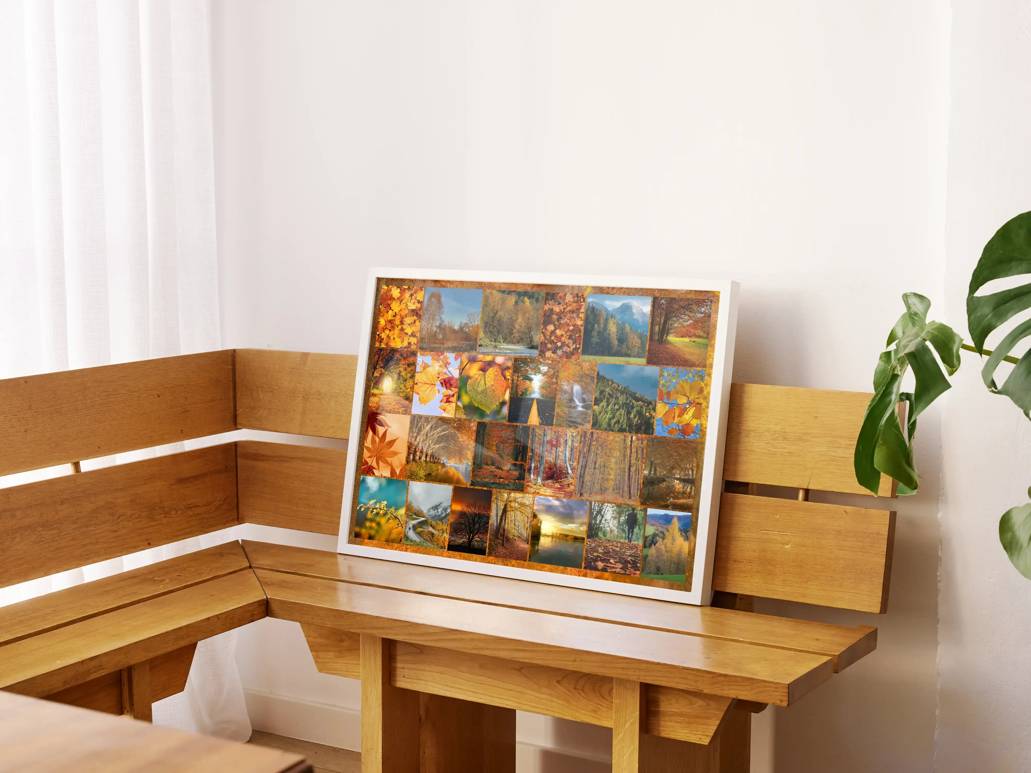 Créez une magnifique décoration murale personnalisée à partir de vos propres photos. Imaginez une collection automnale de paysages et de moments en famille transformée en une œuvre d'art unique, avec des textes personnalisés tels que Fall Vibes. Commencez aujourd'hui à concevoir votre collage et apportez une touche de chaleur à votre intérieur.
