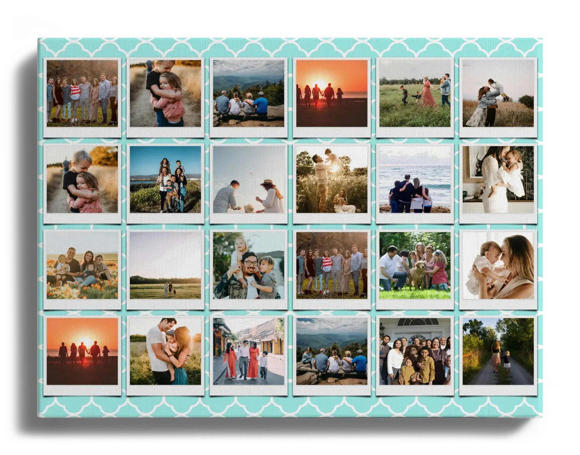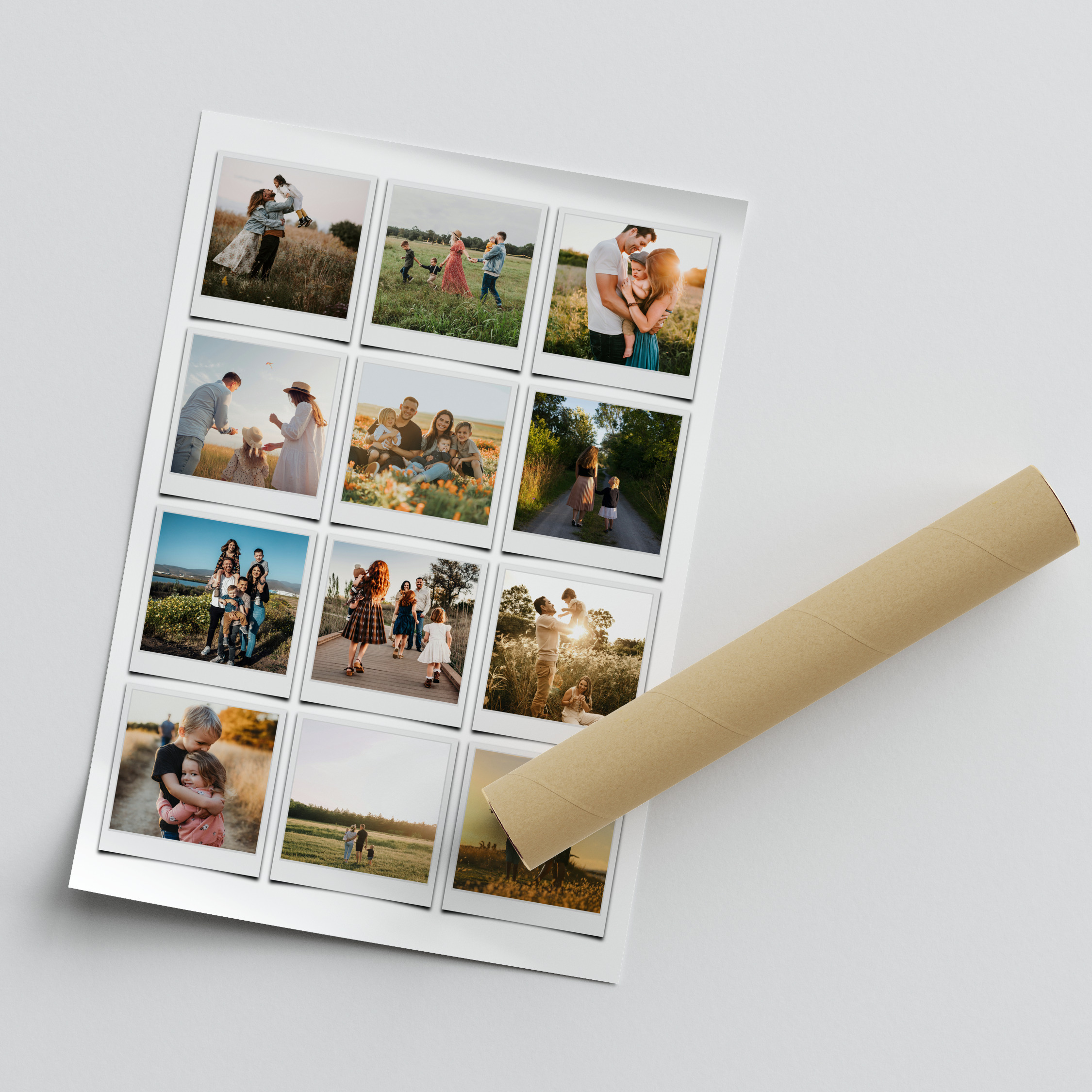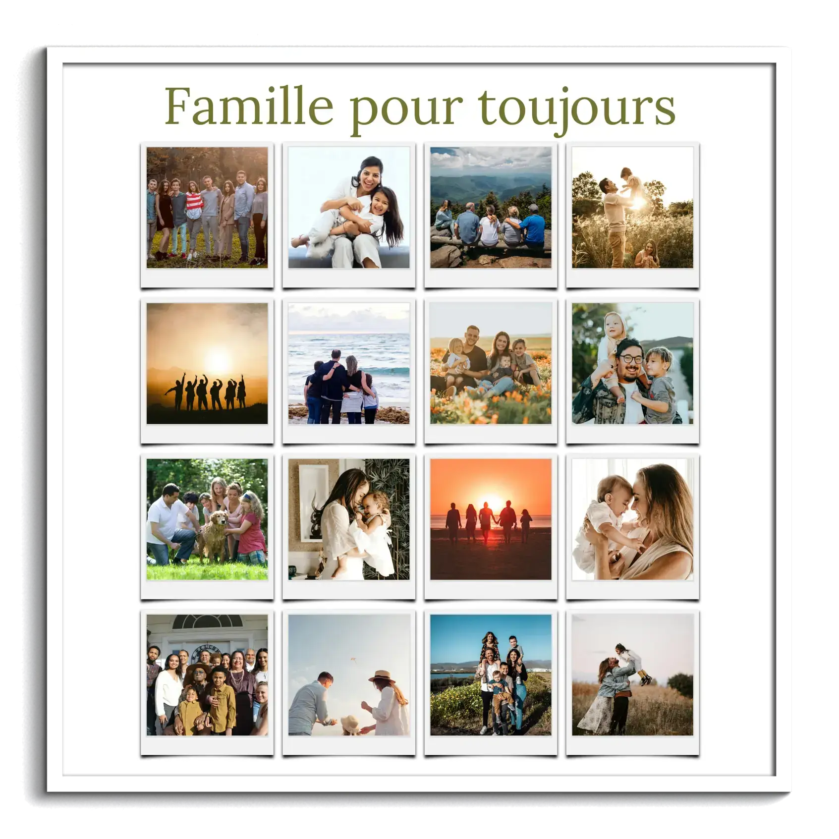 Collage photo famille Polaroid personnalisé - créez et légendez chaque photo et le collage