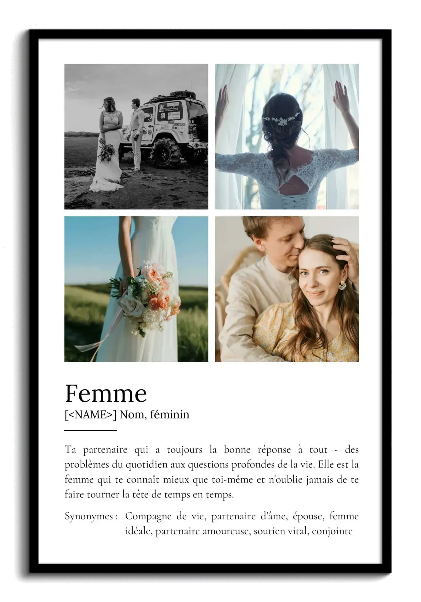 Poster Définition Personnalisé: Épouse - Offrez un Souvenir Unique!