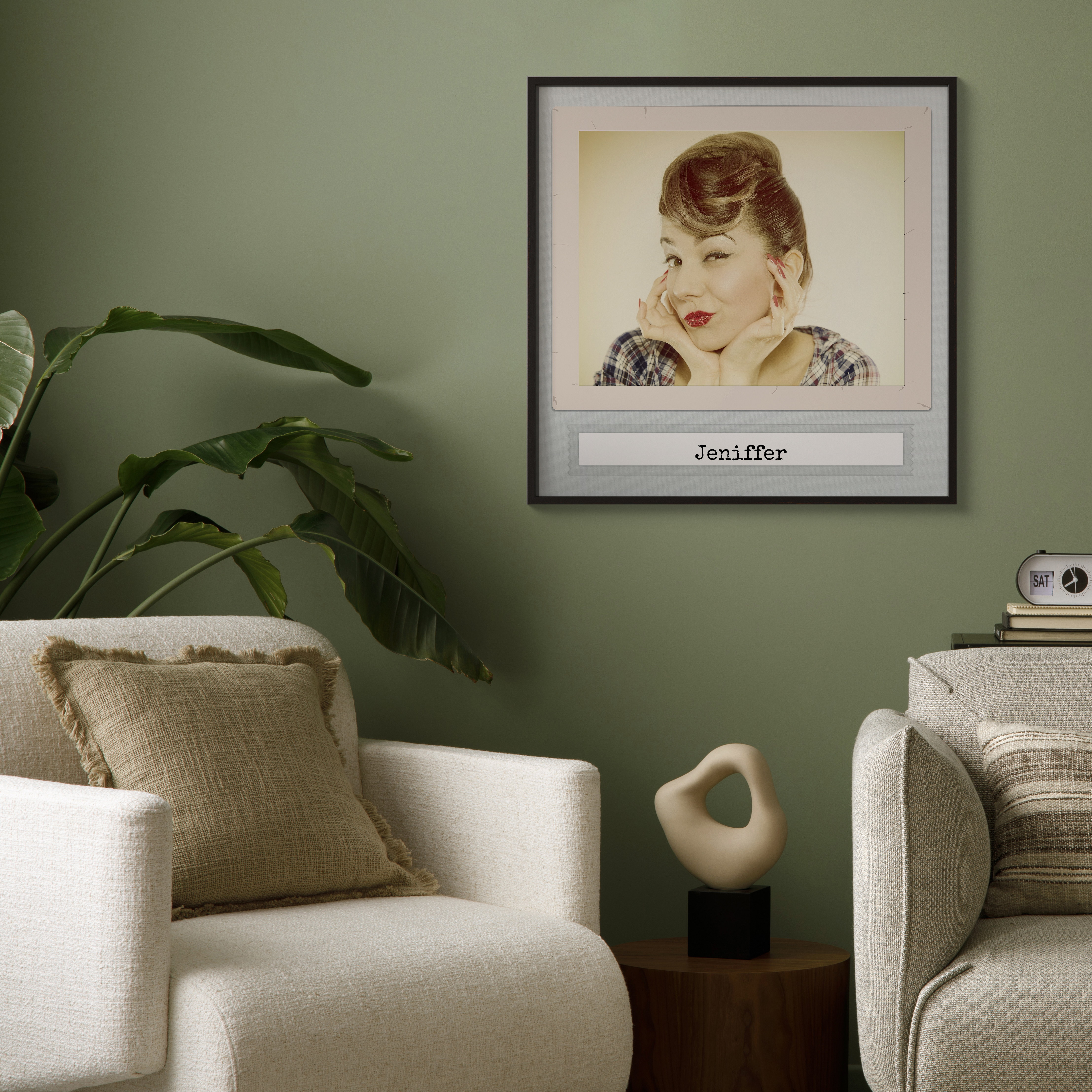 Photo vintage personnalisé: portrait élégant, nom inclus. Cadeau unique ou décoration murale chic.
