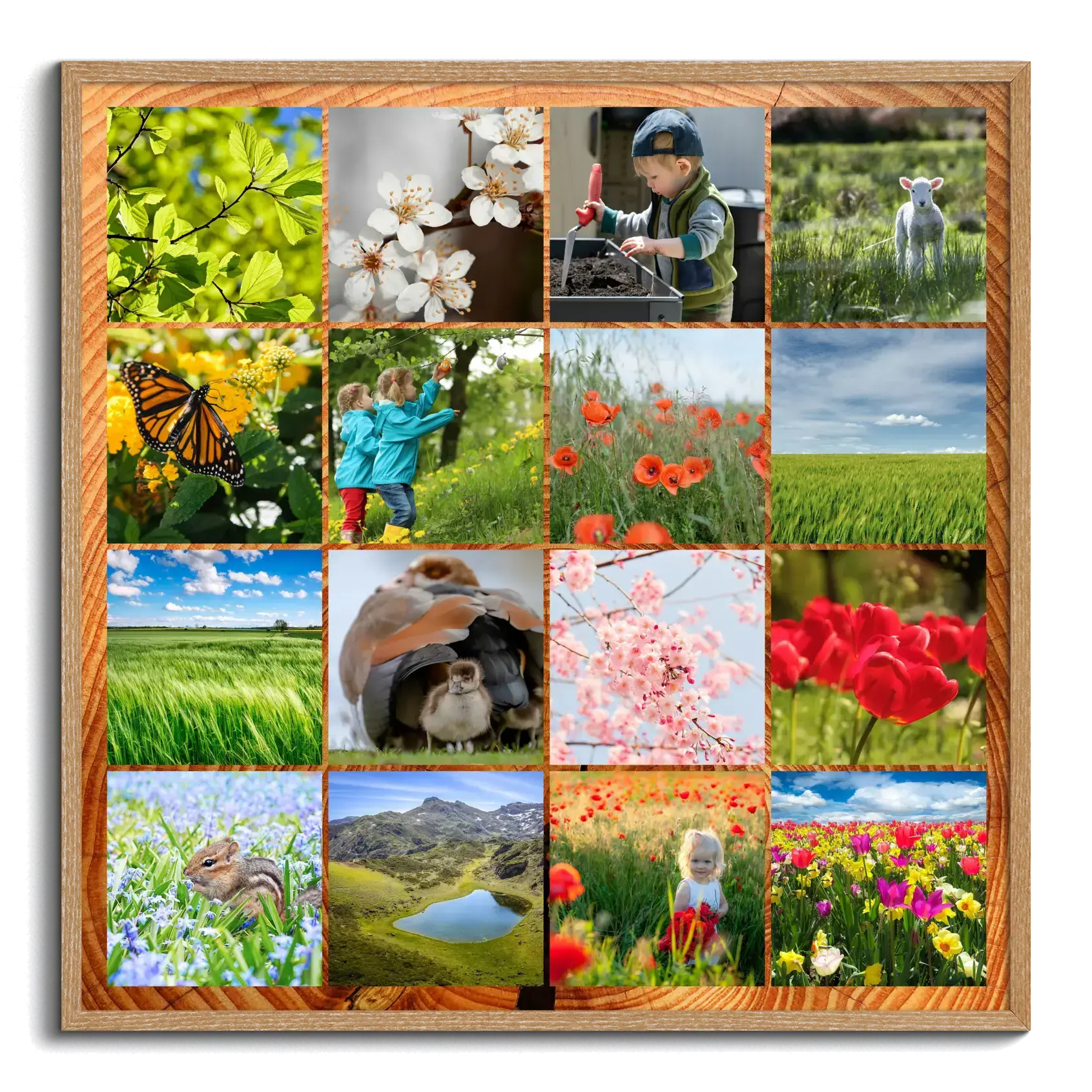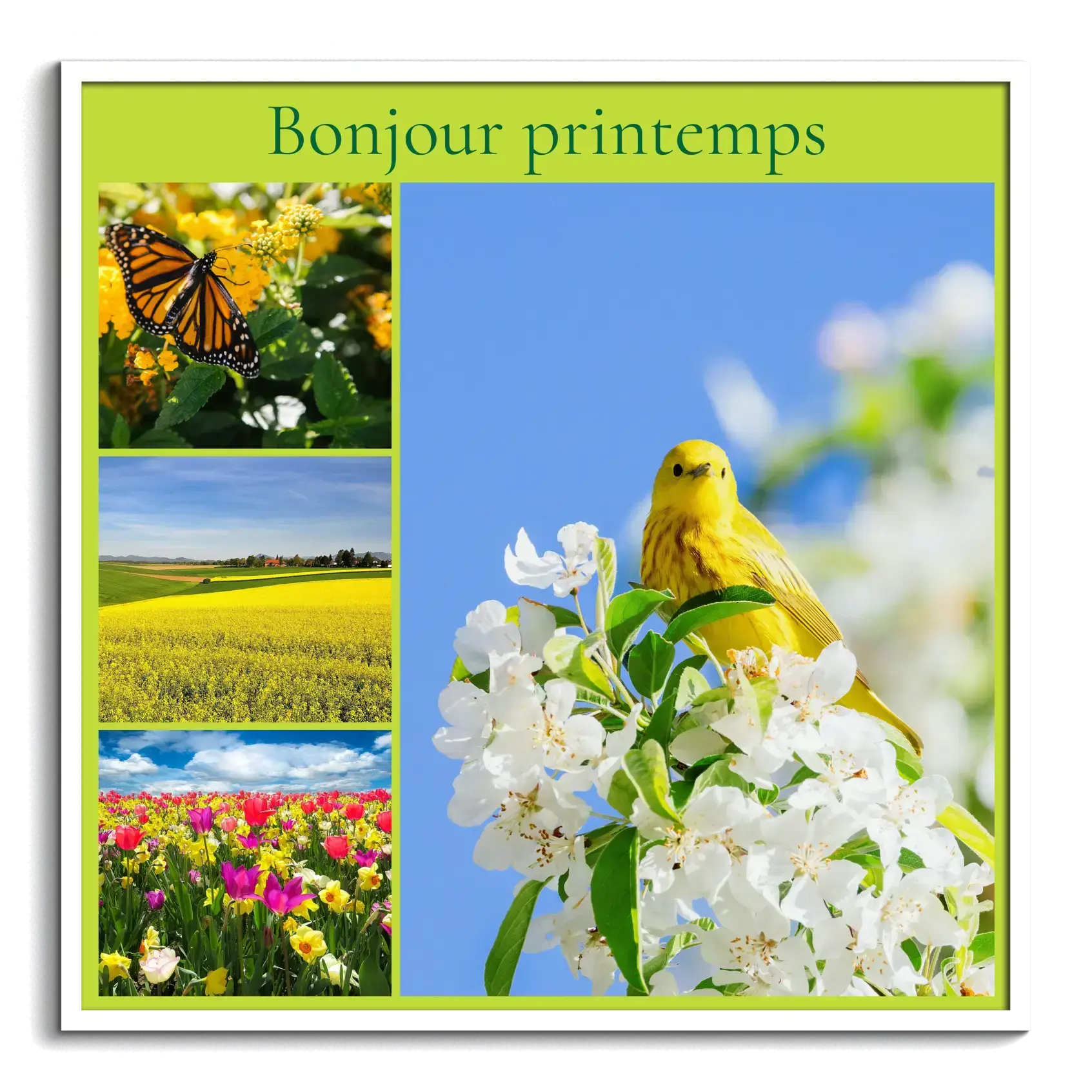Affiches murales de printemps: créez vos collages photo de fleurs et prairies, texte perso