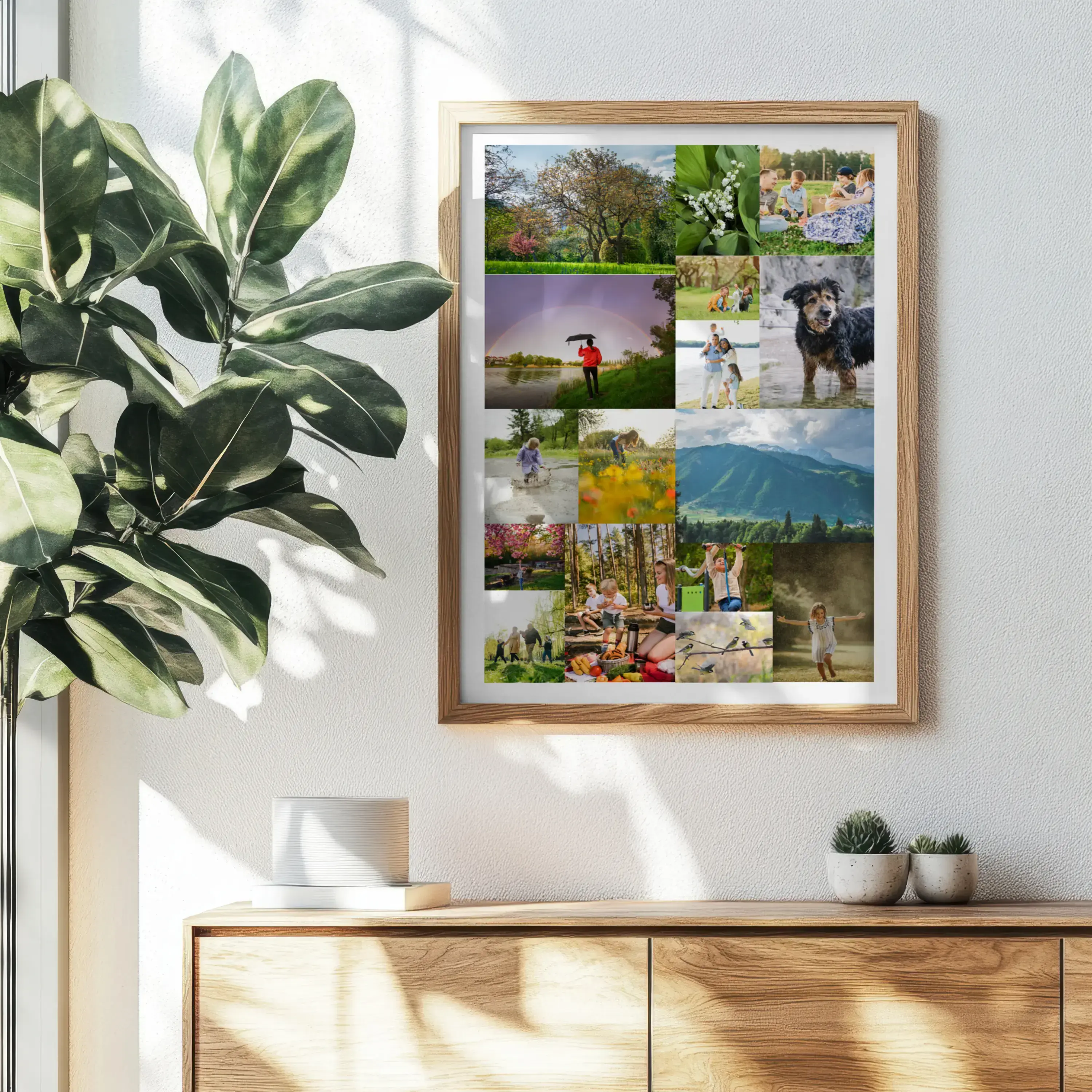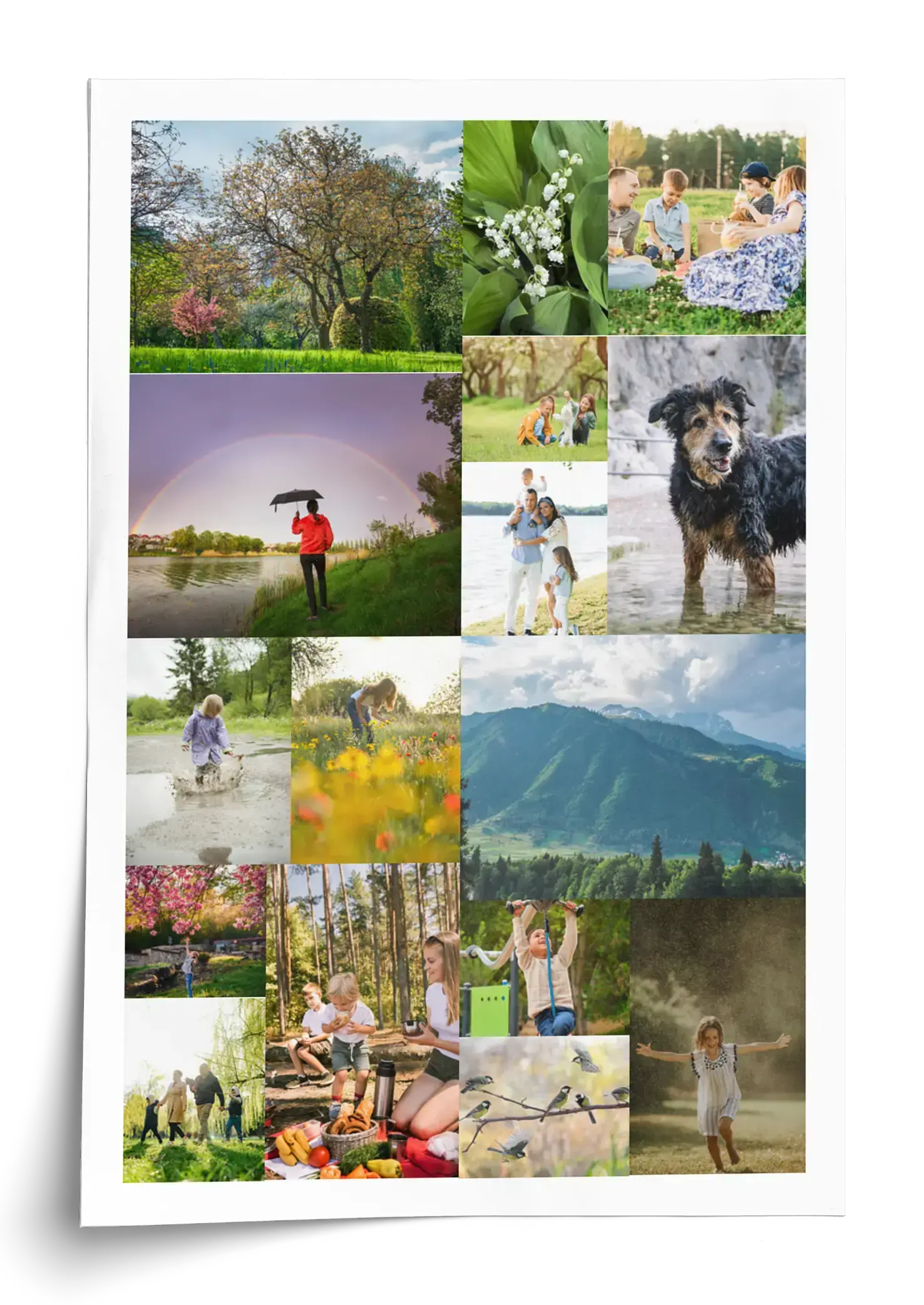 Comment ça marche: choisis un modèle, règle format, orientation et nombre d’images, importe tes photos, place-les et recadre, personnalise couleurs et textes, puis termine. Ajoute au panier pour l’impression ou choisis le téléchargement en haute définition.